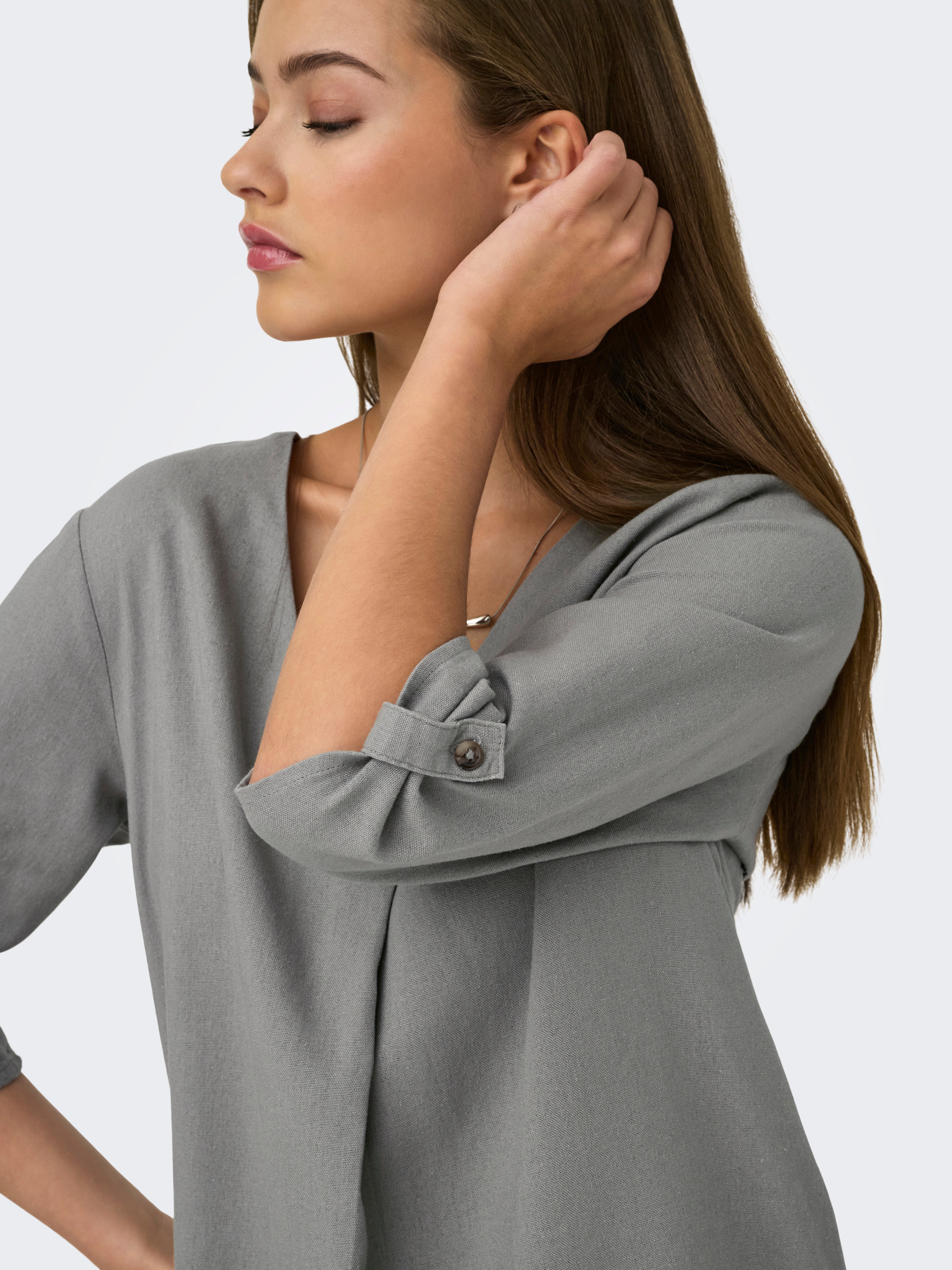 Tavapärane lõige V-kaelus Üles volditud mansetid Volüümikad varrukad Top