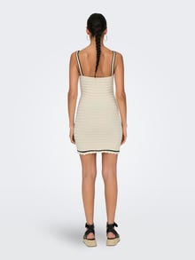 Muuda üleminek lihtsaks kevad- ja suvestiilidega, mis sobivad ideaalselt mõnusaks vahehooajaks. Puuvill on valmistatud looduslikest kiududest, mis loovad pehme ja hingava kanga. - Toote tüüp : Kootud kleit - Kaelaosa : Neljakandiline kaelus - Varrukas : Varrukateta - Pikkus/suurus : Minipikkus - Täiendav info : Kontrastsed õmblused - Lõige : Kitsas lõige