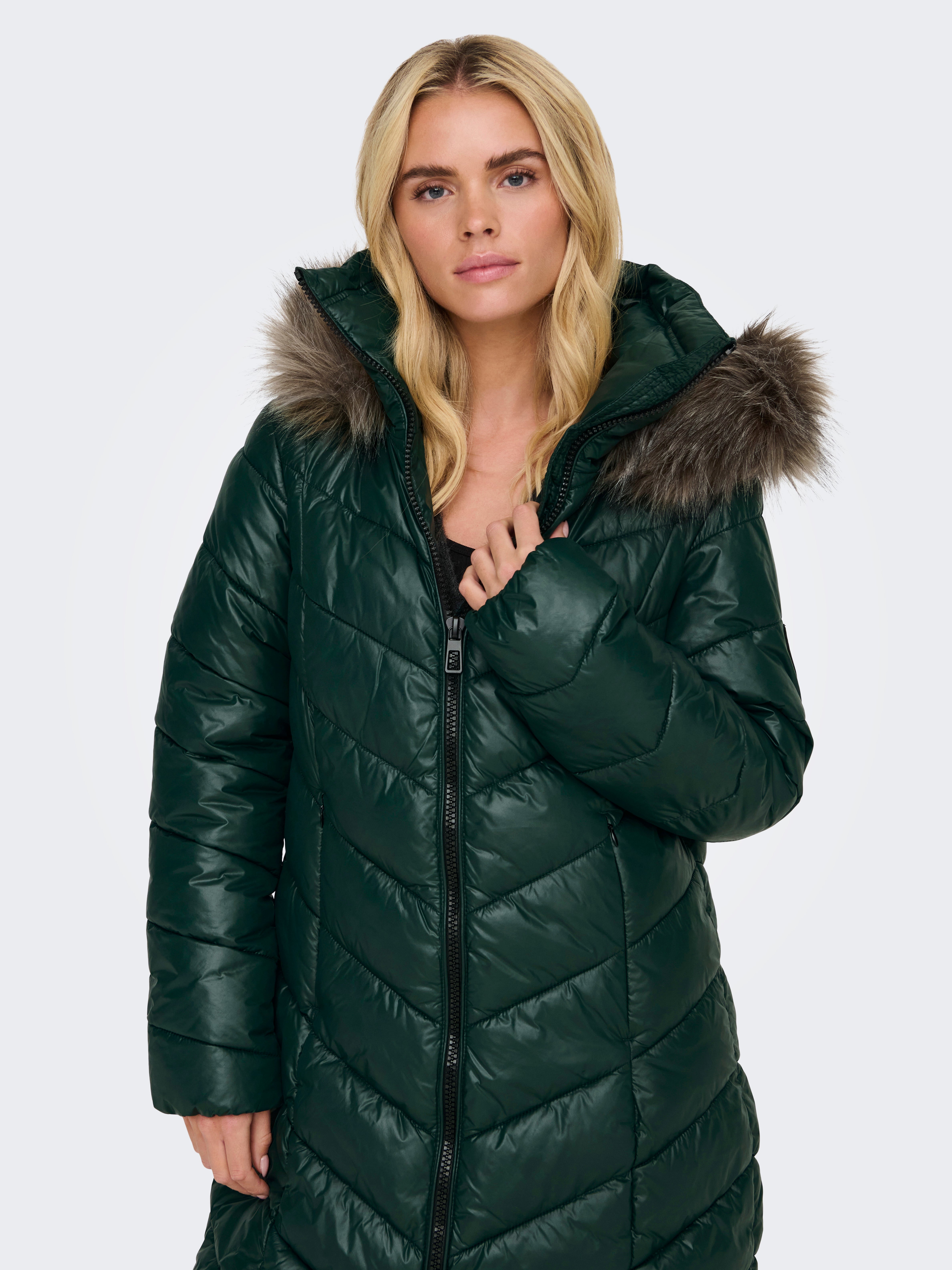 Eemaldatava kunstkarusnahast äärisega kapuuts Mantel