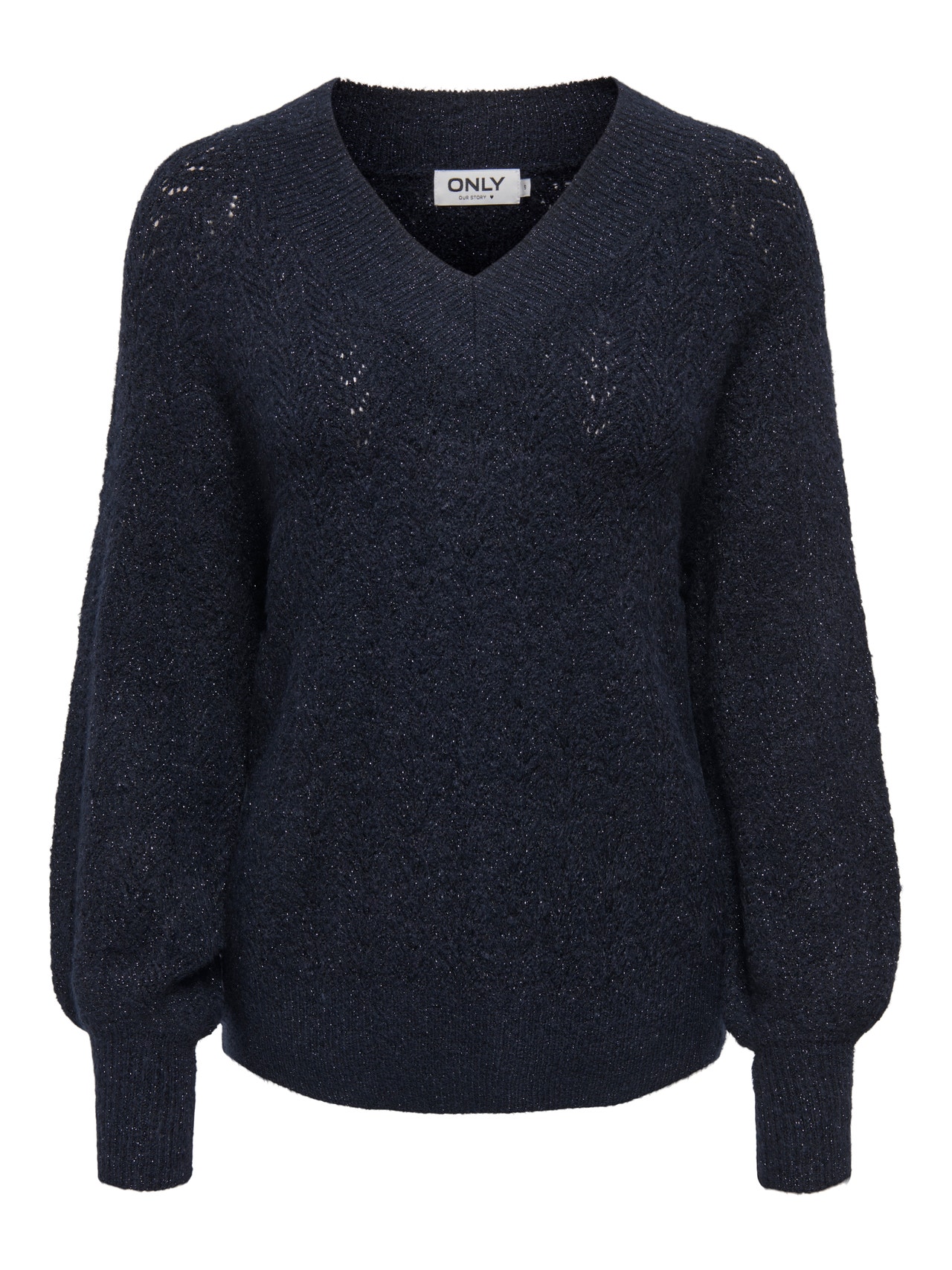 Pane oma ilmele punkt peale ajatu naiseliku kudumiga, lisades pehmust ja soojust. - Toote tüüp : Kootud pullover - Kaelaosa : V-kaelus - Varrukas : Pikad varrukad - Varrukad : Volüümikad varrukad - Mansetid : Kõrged mansetid - Täiendav info : Sädelev detail