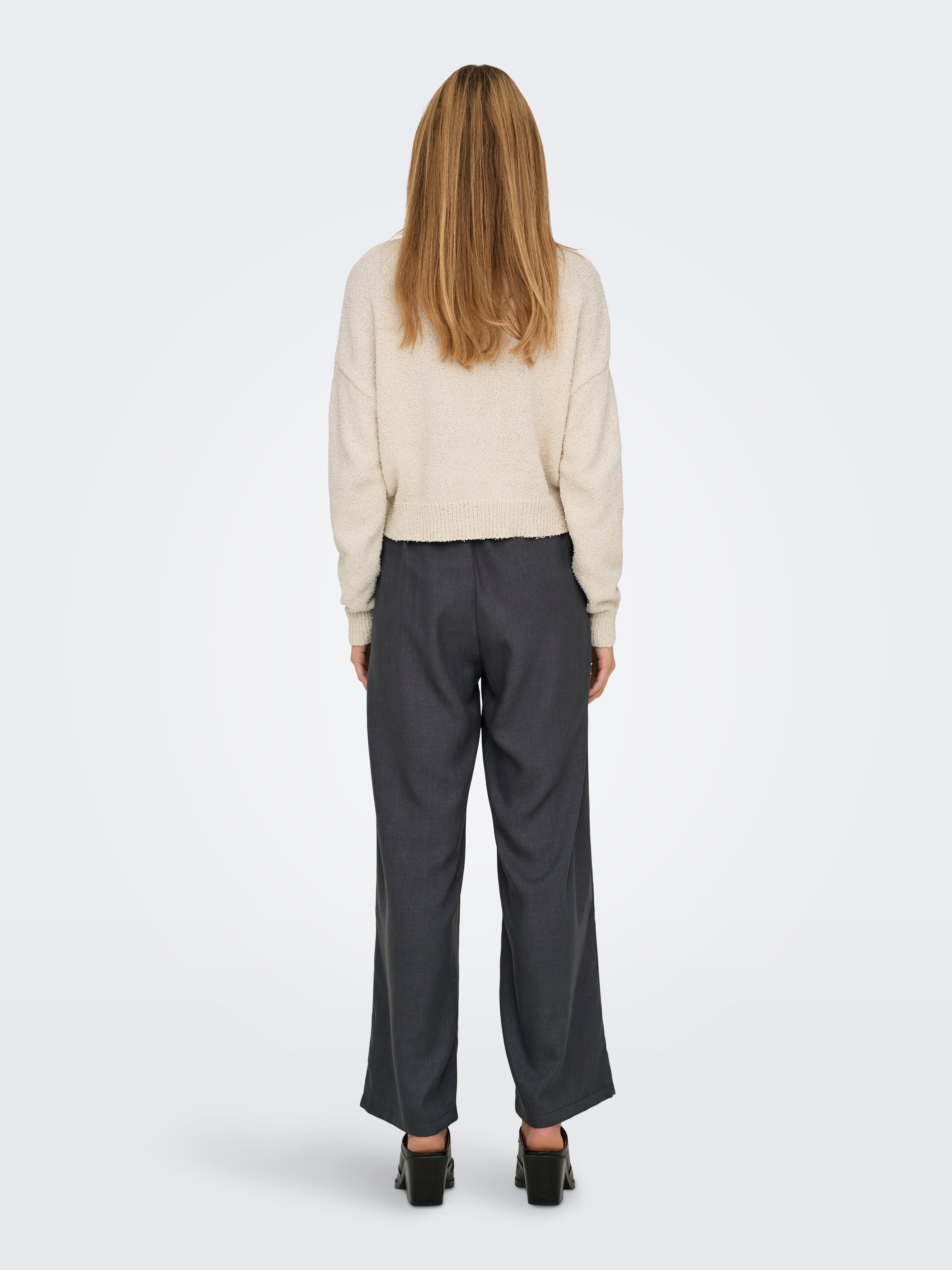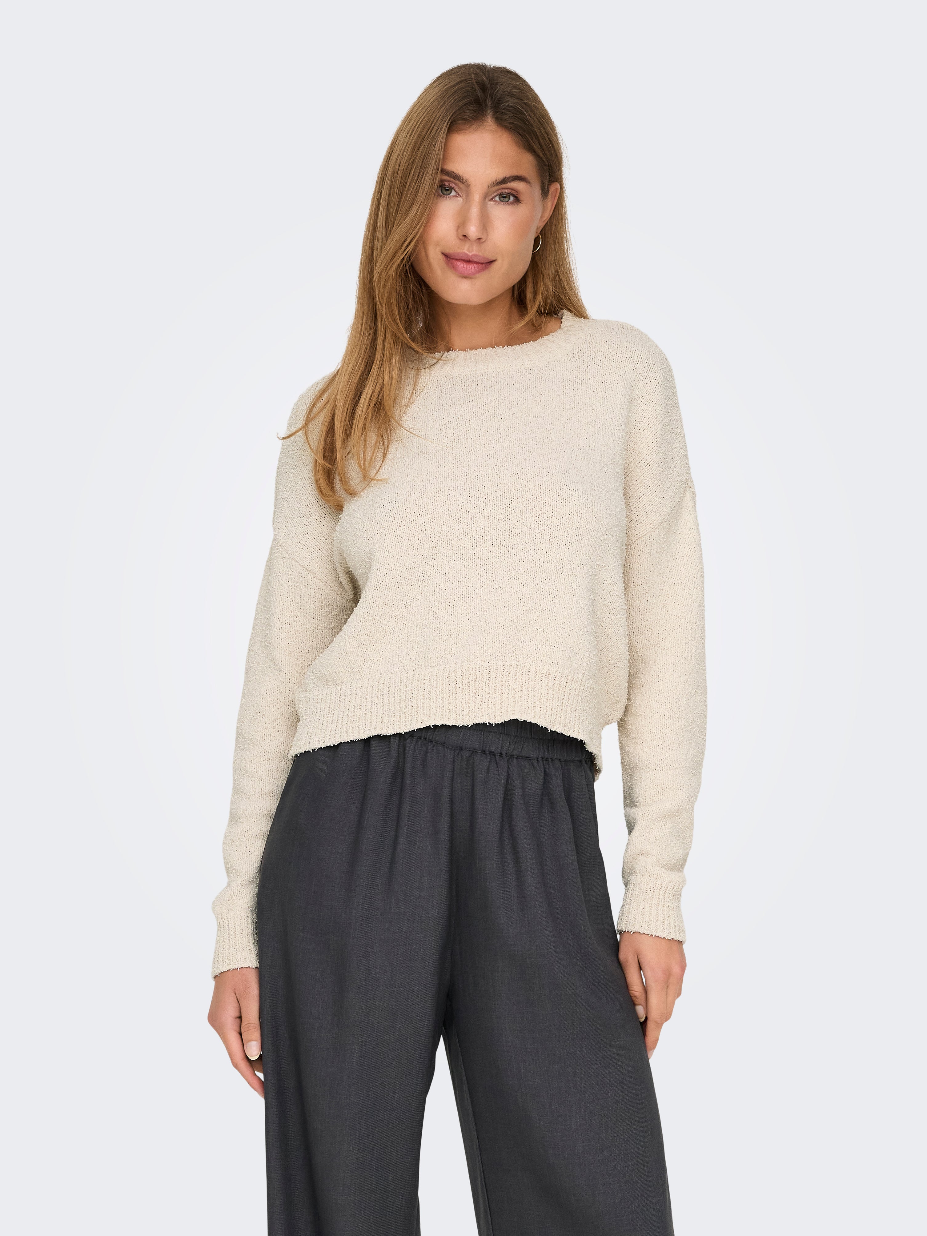 Ümmargune kaelus Soonikuga mansetid Langetatud õlaosa Pullover