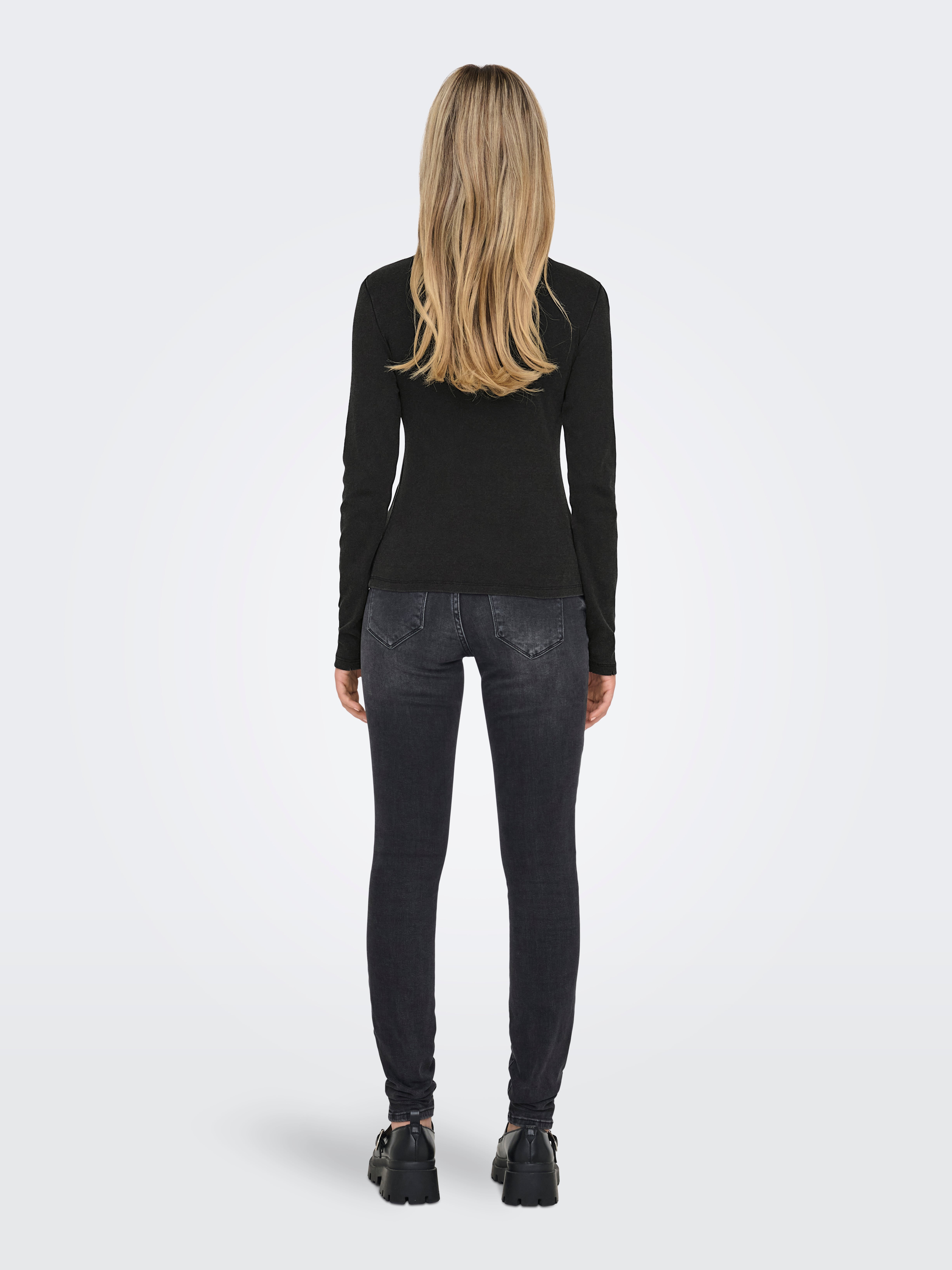 Eriti kõrge vöökohaga lõige Ümmargune kaelus T-särk