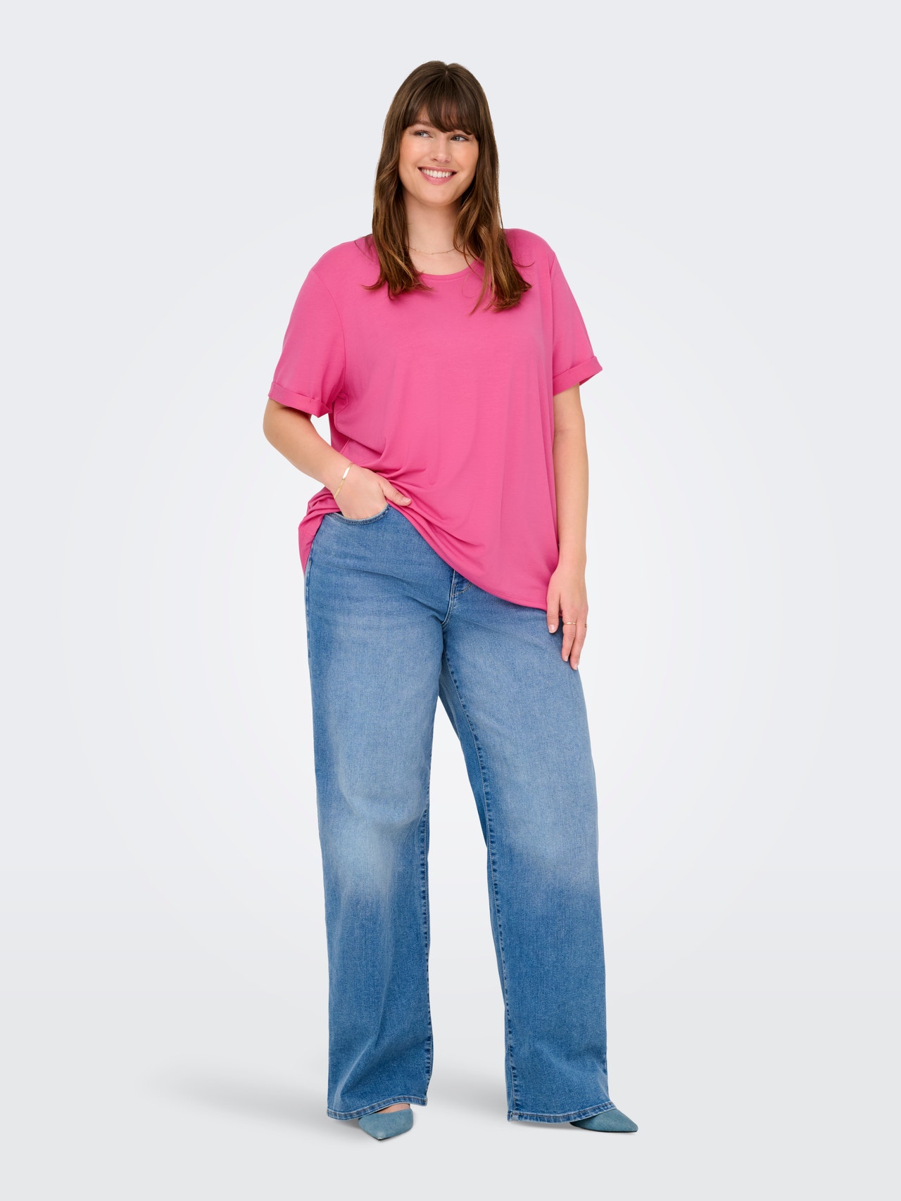 Tavapärane lõige Ümmargune kaelus Üles volditud mansetid T-särk