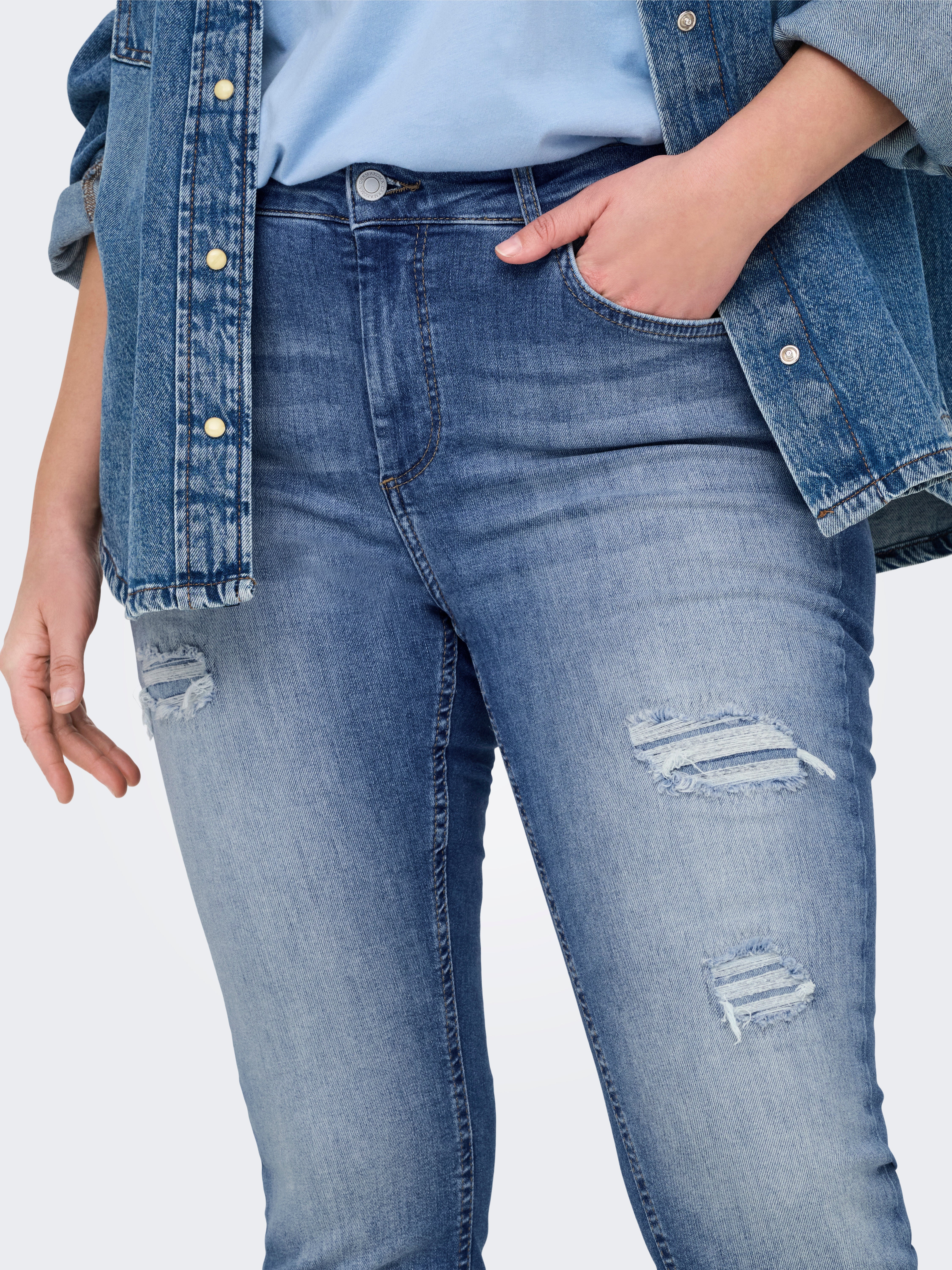 Meie pluss-suuruses kitsad teksad firmalt ONLY CARMAKOMA on loodud rõhutama teie kumerusi liibuva kujuga, mis pakub enesekindlat ja meelitavat välimust. Stiilil on mugav vöökoha kõrgus ja palju venivust, mistõttu sobivad need ideaalselt igapäevaseks kandmiseks. Õhuke jalg loob elegantse silueti, mis sobib nii vabaaja kui ka rafineerituma riietuse jaoks. Usaldusväärne valik igasse olulisesse garderoobi.
