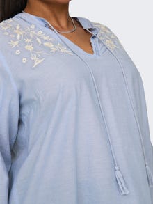 ONLY CARMAKOMA on rahvusvaheline moebränd kurvikatele naistele, kelle suurus jääb vahemikku 42–54. Selle stiilid rõhutavad kõiki ilusa, naiseliku ja kurvika silueti eeliseid, et näeksid vapustav välja kogu päeva, iga päev. Kurvikate stiilid on loodud sobima kurvikate naiste kehadele. - Toote tüüp : Topp - Neck : V-kaelus - Varrukas : Pikad varrukad - Mansetid : Venivad mansetid - Lõppsõna : Nöörkinnitus - : Vormikas - Lõige : Standardlõige
