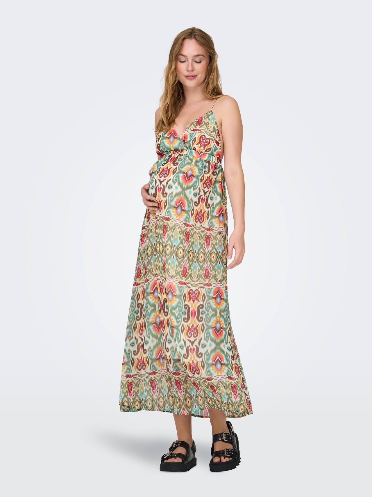 Värskenda oma garderoobi stiilse kleidiga ja loo rabav välimus, mis sobib igaks sündmuseks ja hooajaks. AINULT RASEDUS on mõeldud kaasaegsele, stiiliteadlikule tulevasele emale, kes soovib tunda end kogu raseduse vältel nii mugavalt kui ka enesekindlalt. Meie rasedarõivad ühendavad endas trendikad teksad, naiselikud detailid ja ajatud põhirõivad, mis kohanduvad teie muutuva kehaga – stiilis järeleandmisi tegemata. Ideaalne nii igapäevaseks välimuseks kui ka erilistel puhkudel. Rasedastiilid on loodud raseda kehale sobivaks ja seda toetavaks. Kaunistava ilme saamiseks vali oma tavaline suurus. - Toote tüüp : Kleit - Kaelaosa : V-kaelus - Varrukas : Varrukateta - Pikkus/suurus : Maksipikkus - Lõige : Tavapärane lõige