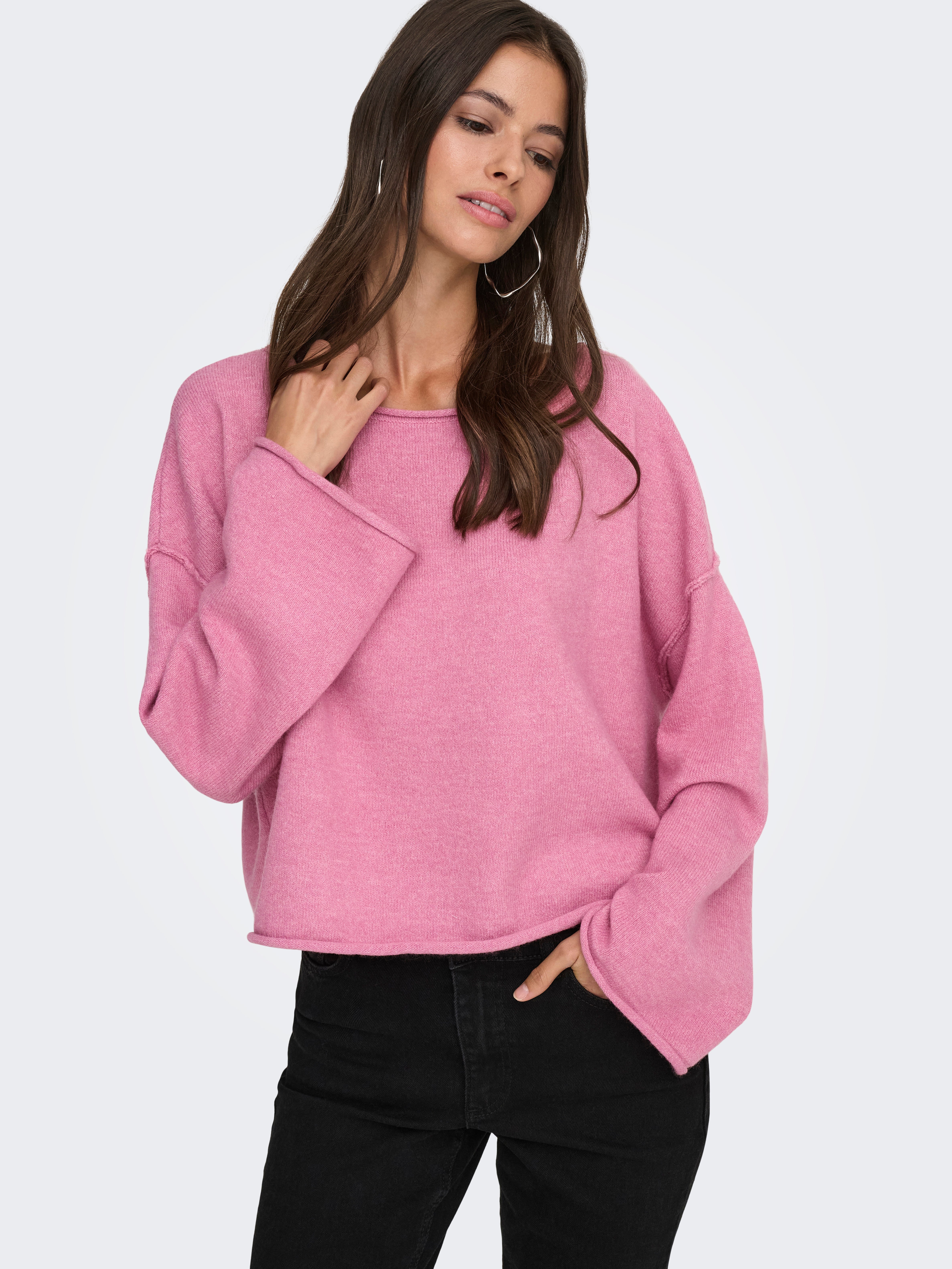 Kootud kangast lõige Sirge kaelus Langetatud õlaosa Pullover