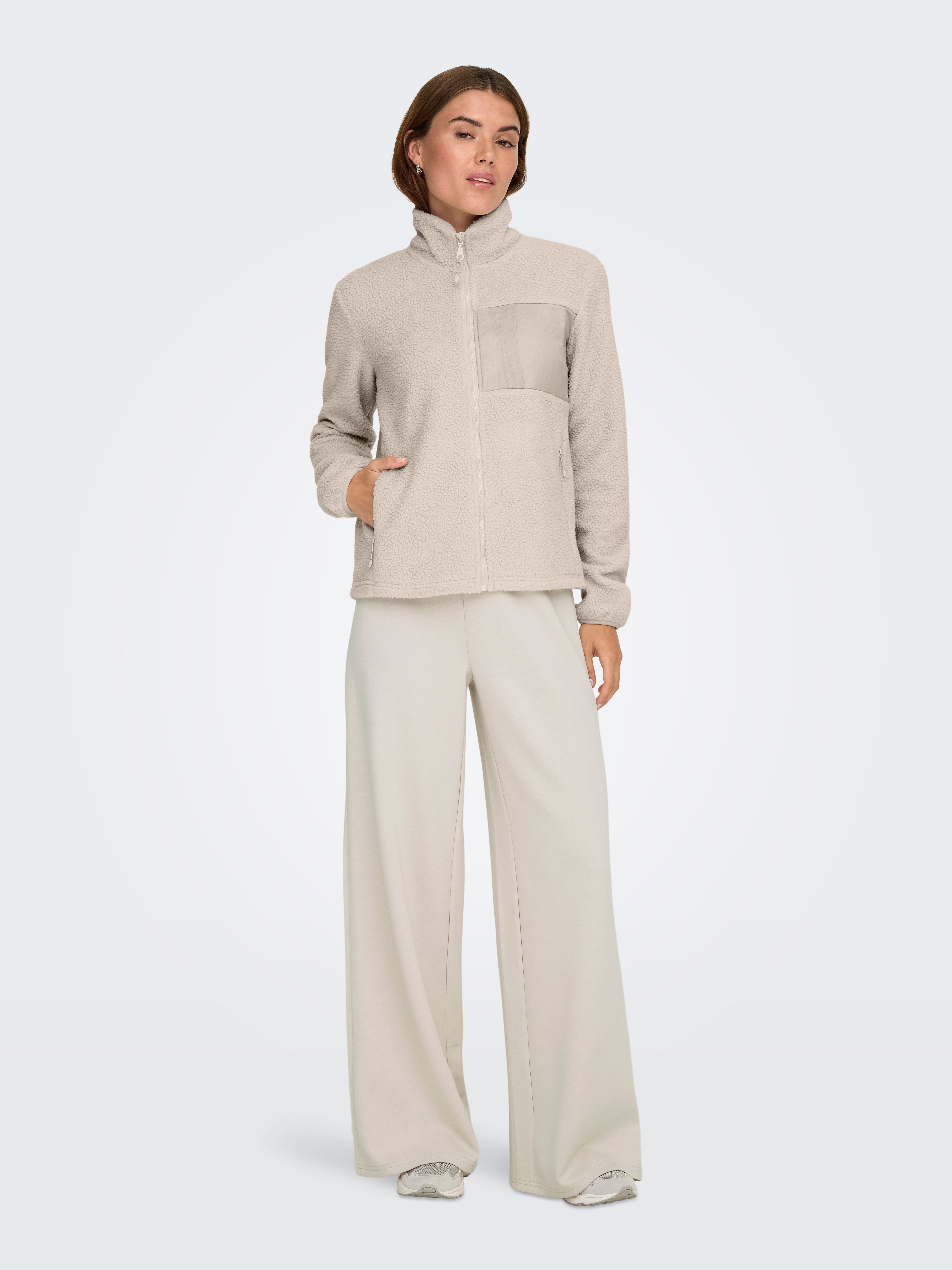 Kõrge kaelus Elastse palistusega mansetid Jope
