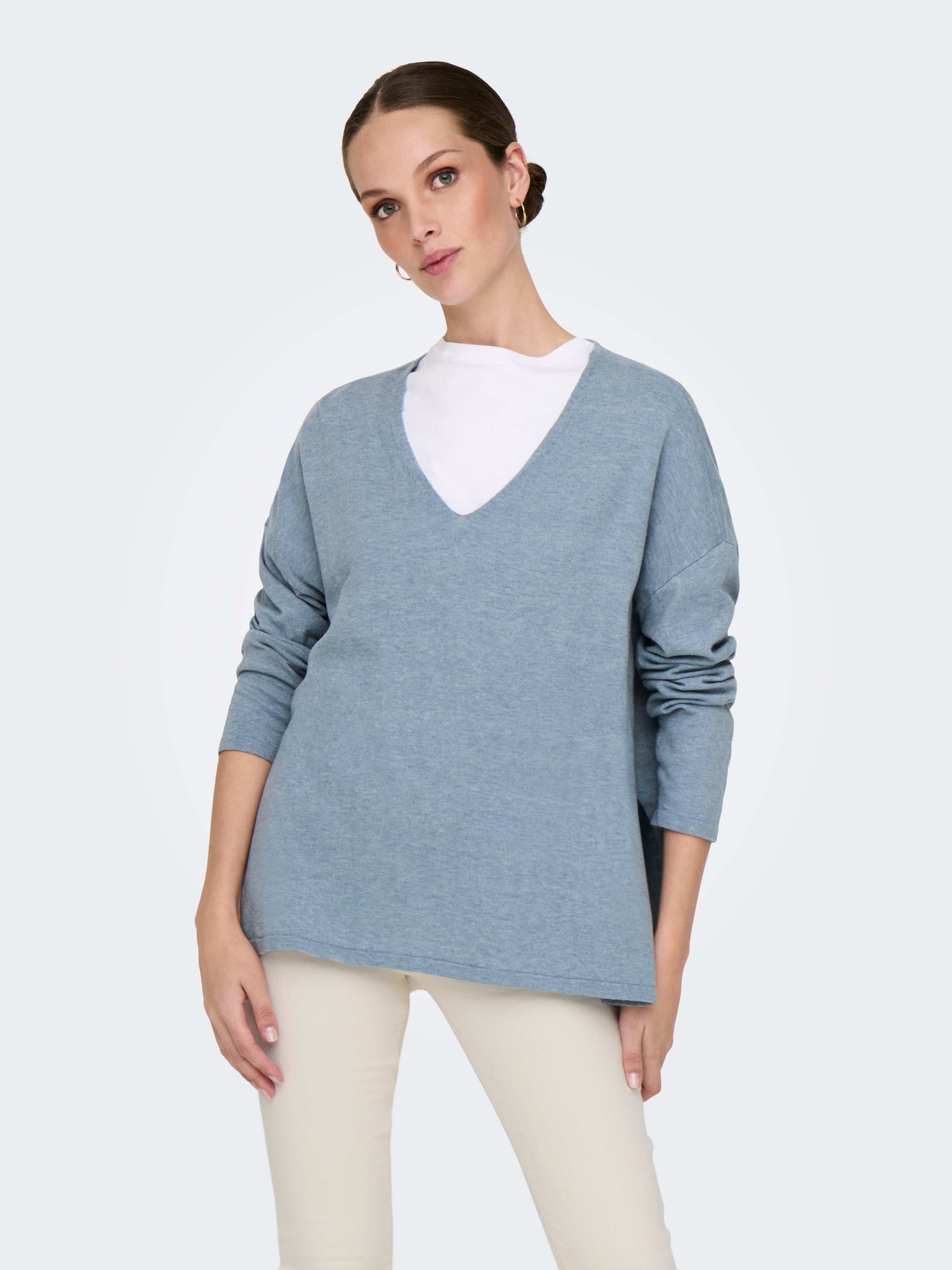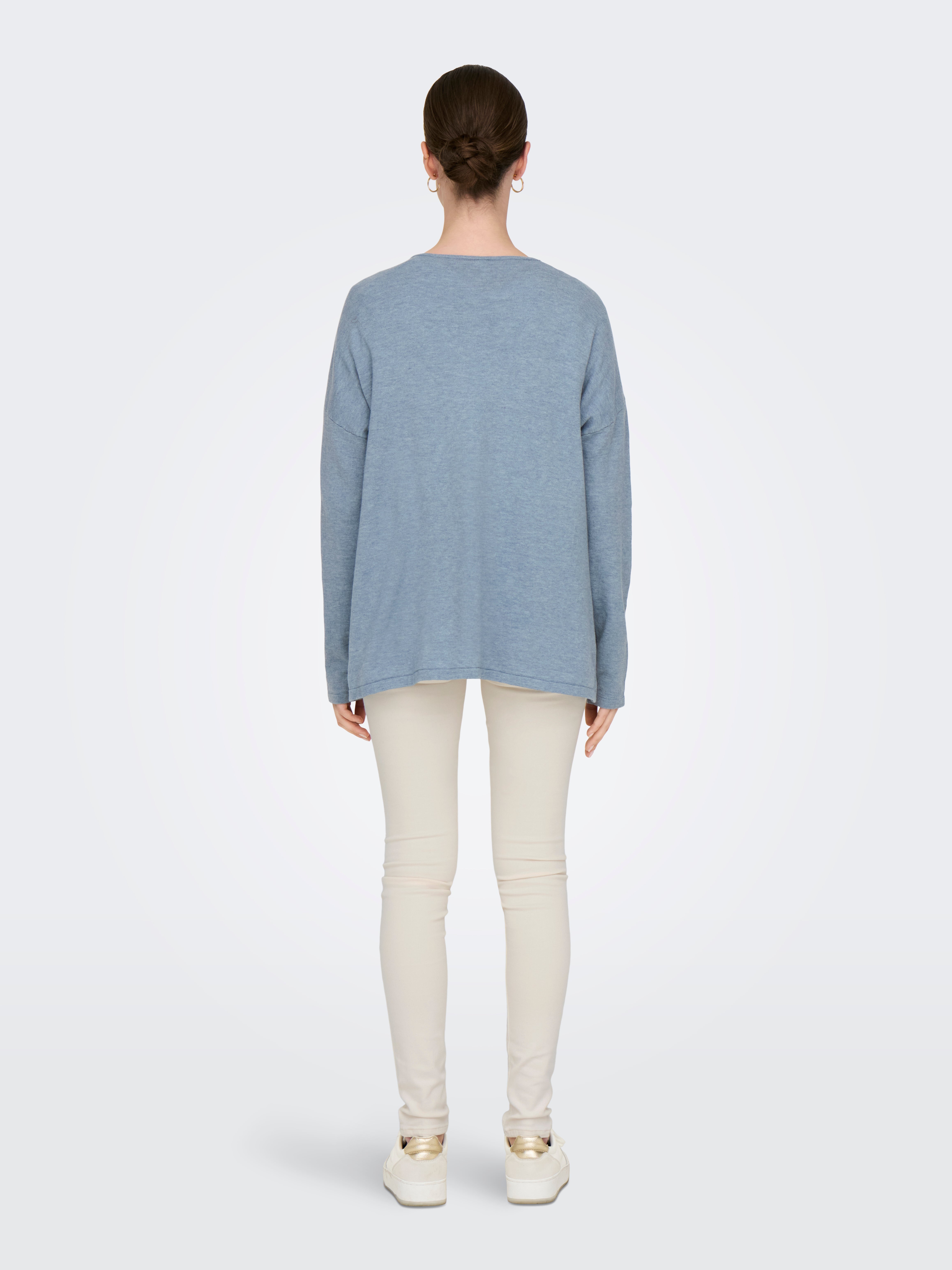 Väga suur lõige V-kaelus Soonikuga mansetid Langetatud õlaosa Pullover