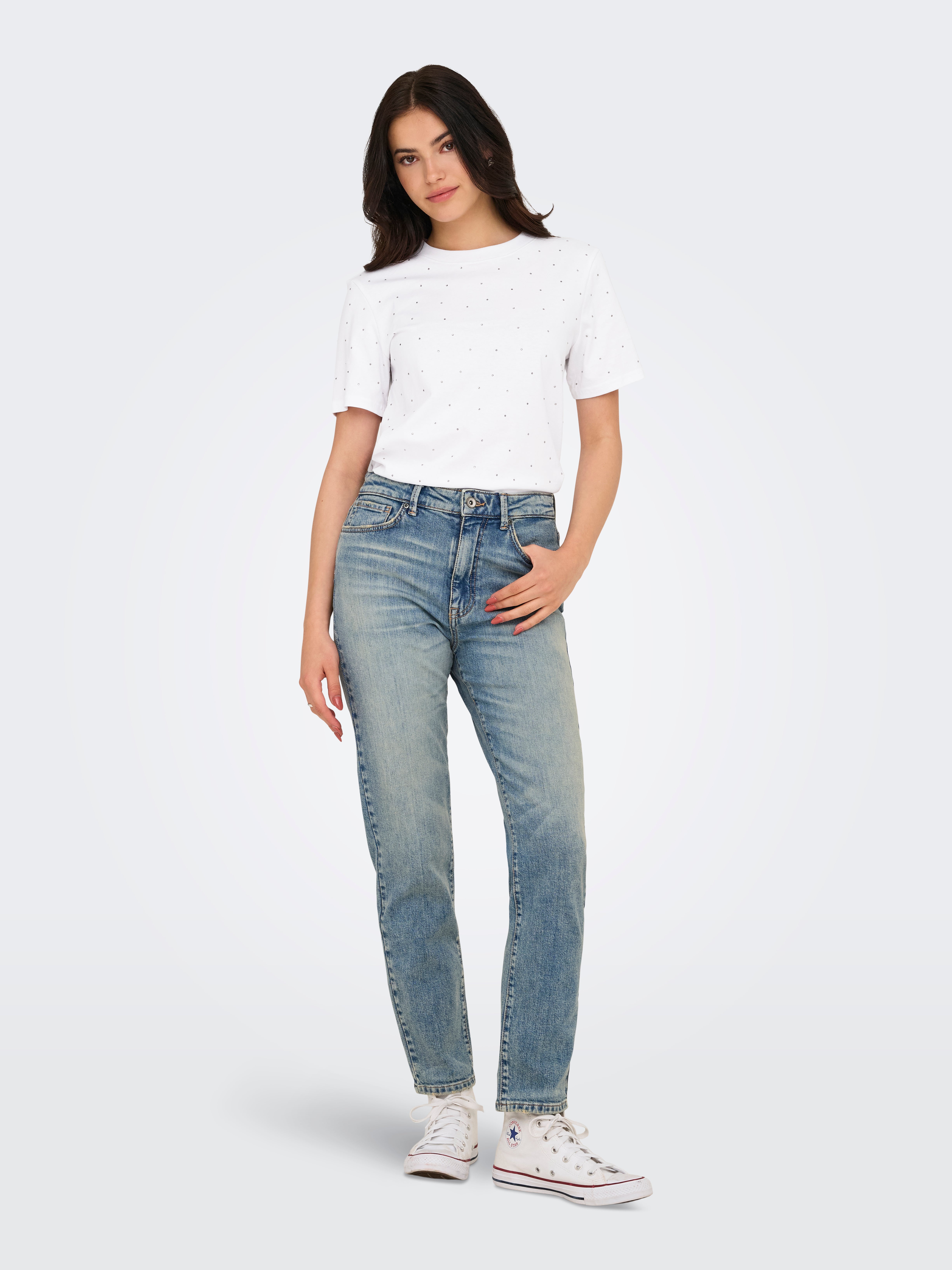 Tavapärane lõige Ümmargune kaelus Langetatud õlaosa T-särk