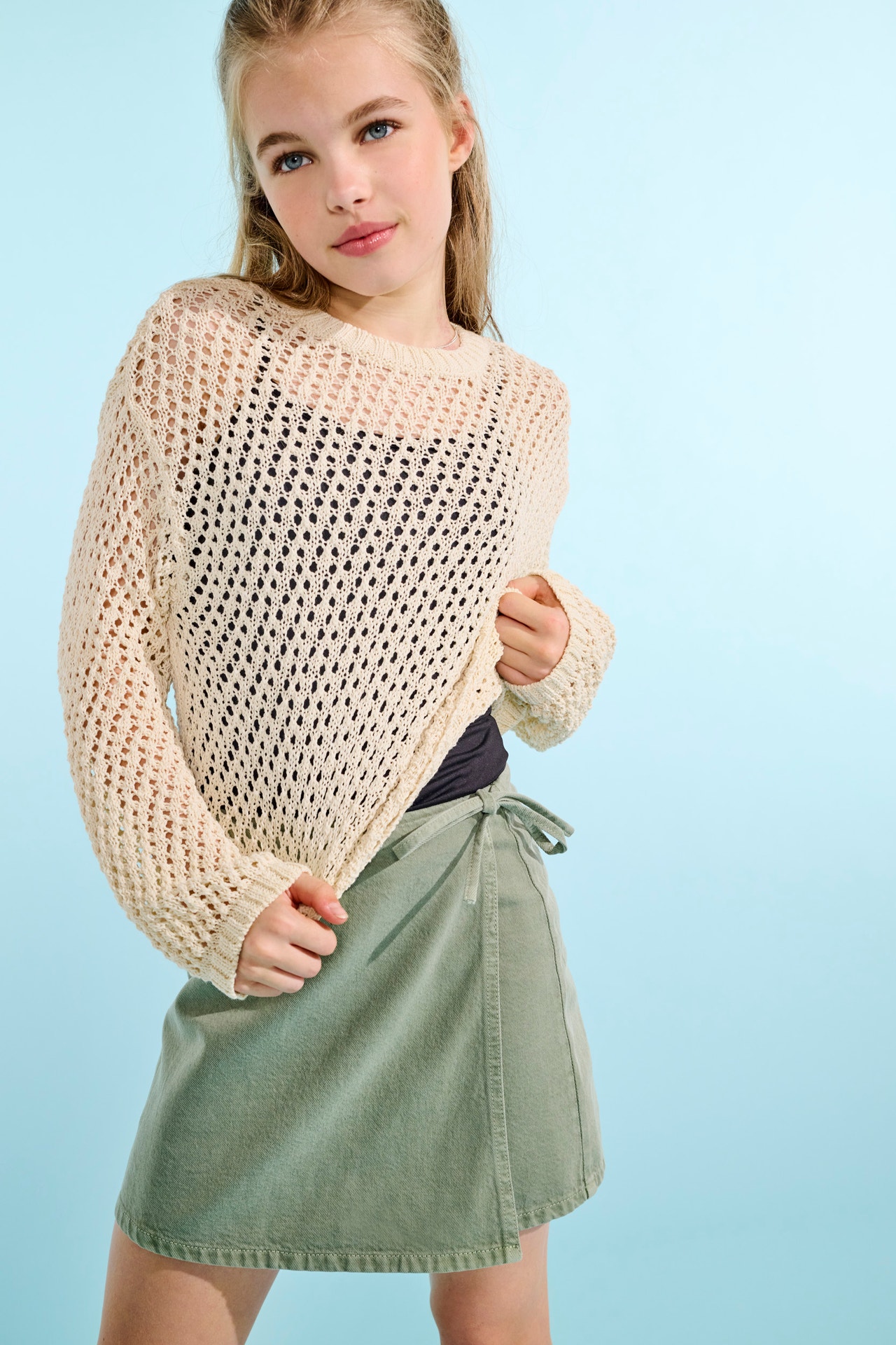 Lisa garderoobi hubane ja stiilne element meie ONLY GIRLSi kudumitega! Ideaalne jahedamateks päevadeks või lisakihina kleidi peale, et saada moodne ja lõdvestunud välimus. See kudum pakub täiuslikku tasakaalu naiseliku elegantsi ja laheda, rahuliku stiili vahel, tagades mugavuse ja soojuse kogu päevaks.