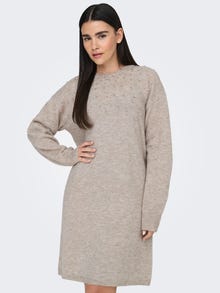 Kootud kangast lõige Ümmargune kaelus Soonikuga mansetid Langetatud õlaosa Pikem kleit