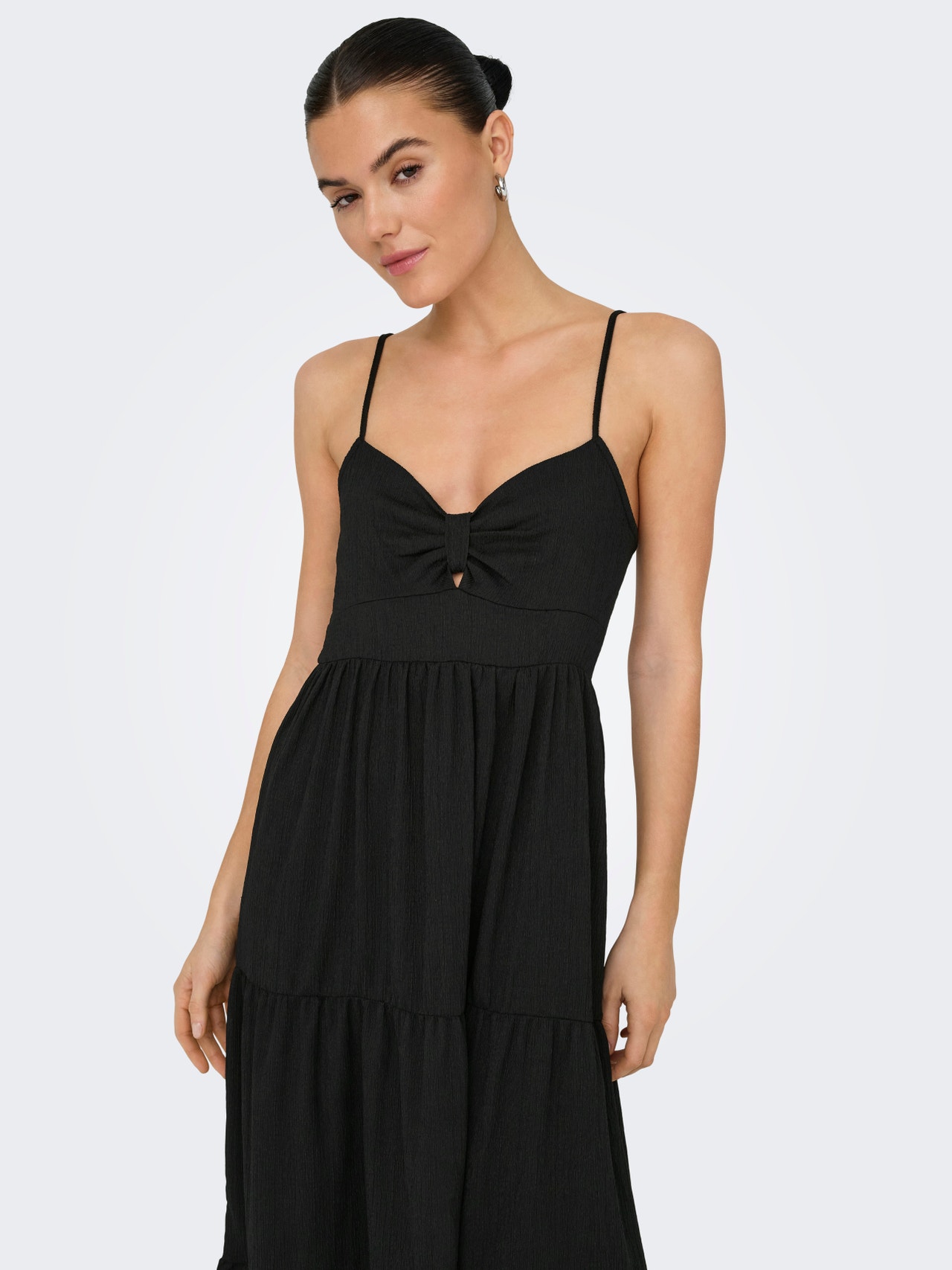 Värskenda oma garderoobi stiilse kleidiga ja loo rabav välimus, mis sobib igaks sündmuseks ja hooajaks. - Toote tüüp : Kleit - Kaelaosa : V-kaelus - Varrukas : Varrukateta - Rihmad : Õhukesed rihmad - Täiendav info : Lõikejoon keskkohas - Lõige : Ruumikas lõige