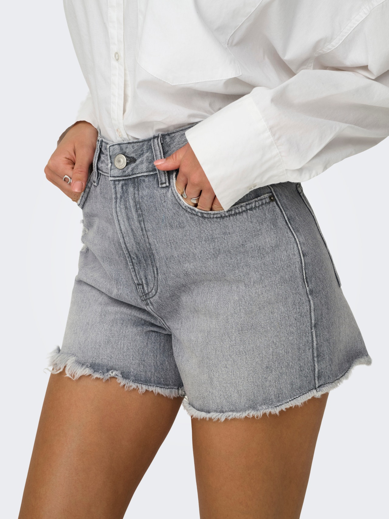 Vahet pole, kas teksad on kitsad või laiad, lühikesed või pikad, heledad või tumedad, igas garderoobis on need olulised. - Toote tüüp : Teksašortsid - Lõppsõna : Nööbi ja luku kinnitus - Taskud : Tagataskud, Münditasku, Esitaskud - Vöökoht : Kõrge vöökoht - Jala info : Hävitatud äärised, Rebitud äärised - Täiendav info : Vööaasad - Lõige : Tavapärane lõige