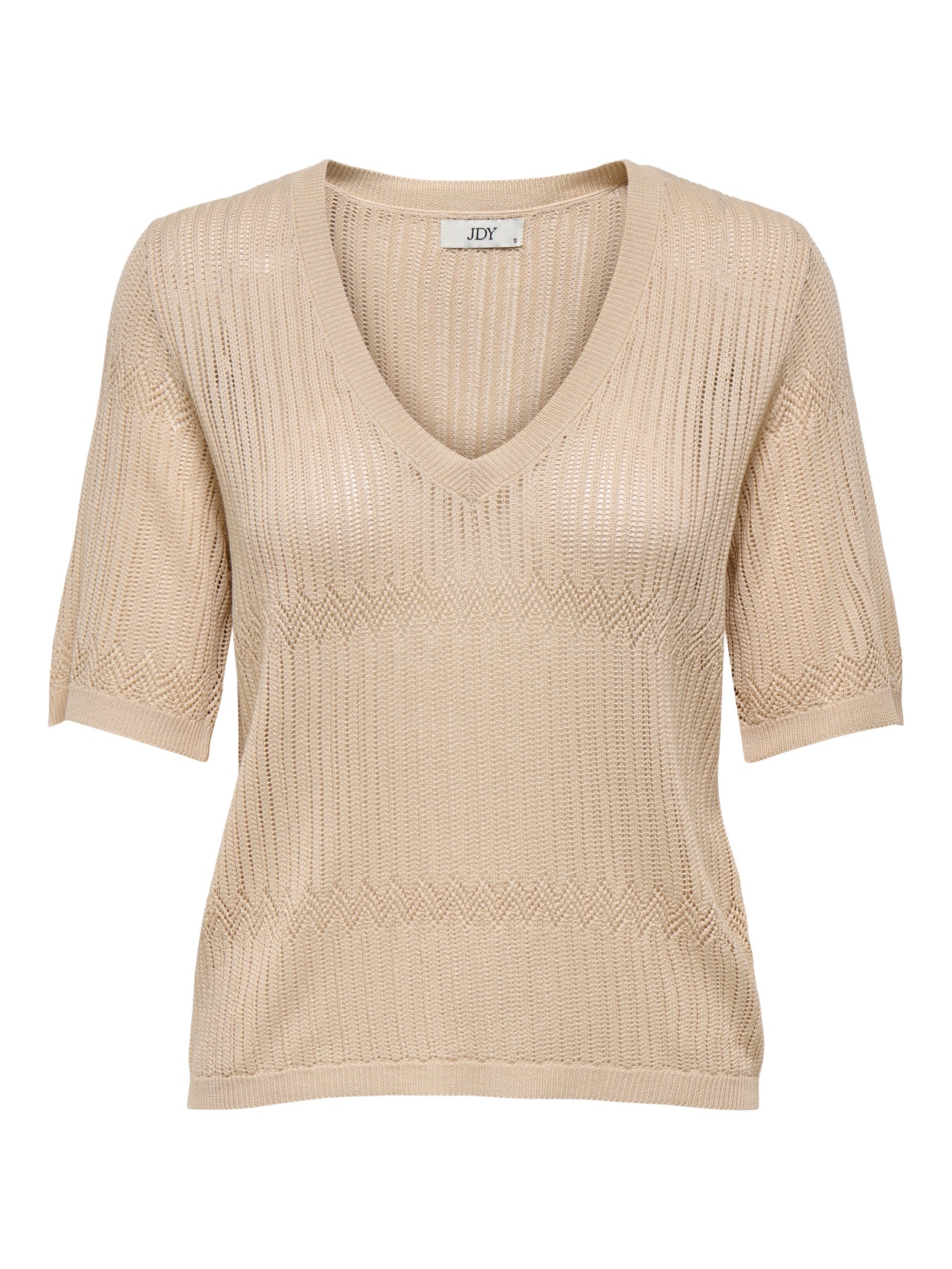 Püsi soojas ja hubases pehmete silmkoeliste stiilidega, mis sobivad ideaalselt igaks sündmuseks ja hooajaks. Struktuurkude iseloomustab lai mustrite ja struktuuride valik, mis loob stiilse ja puhta välimuse. JDY on täiskontseptsiooniga rahvusvaheline moebränd, mis pakub moeteadlikule tarbijale taskukohaseid ja trendikaid tooteid. - Toote tüüp : Kootud T-särk - Kaelaosa : V-kaelus - Varrukas : Lühikesed varrukad - Lõige : Kootud kangast lõige