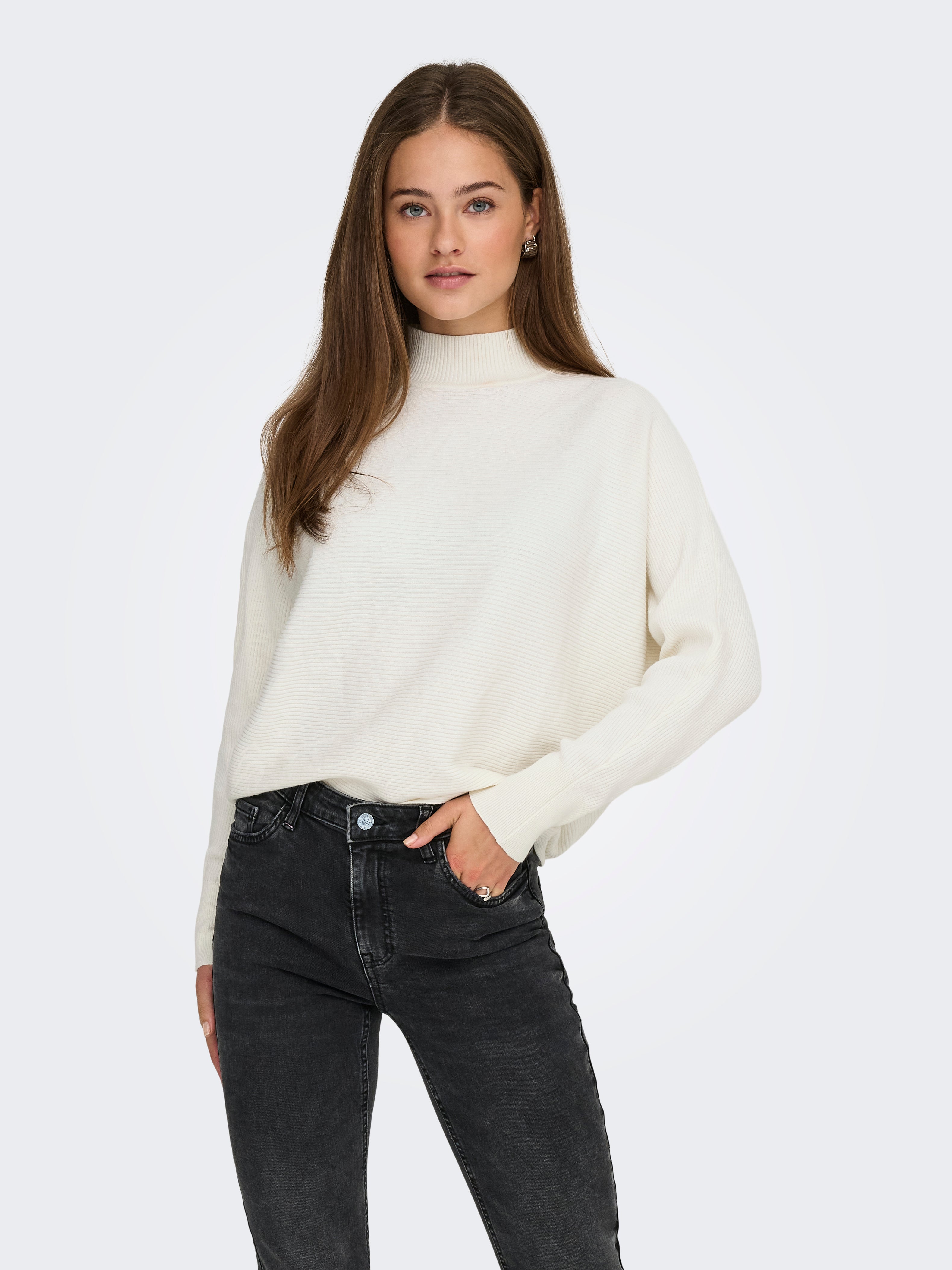 Kootud kangast lõige Kõrge kaelus Soonikuga mansetid Nahkhiirevarrukad Pullover