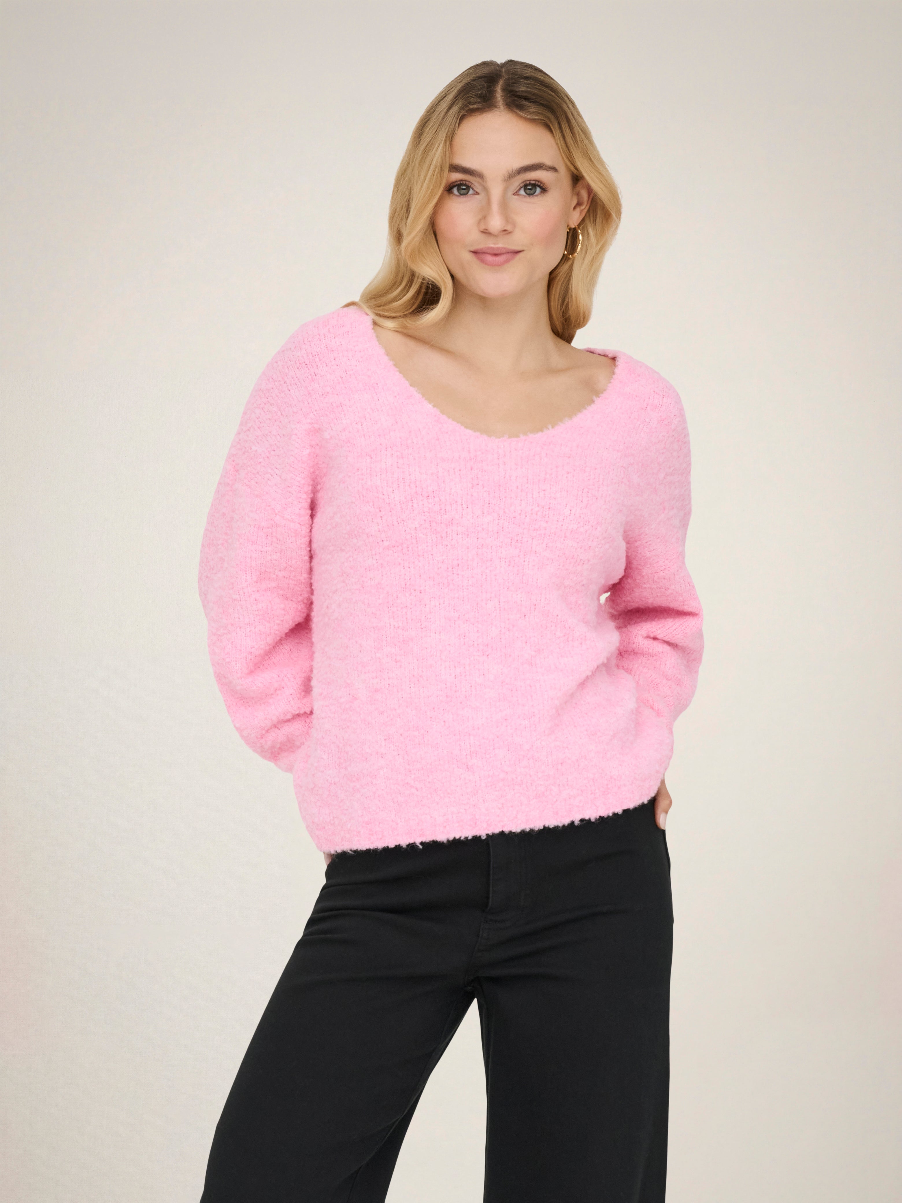 Kootud kangast lõige V-kaelus Soonikuga mansetid Pullover