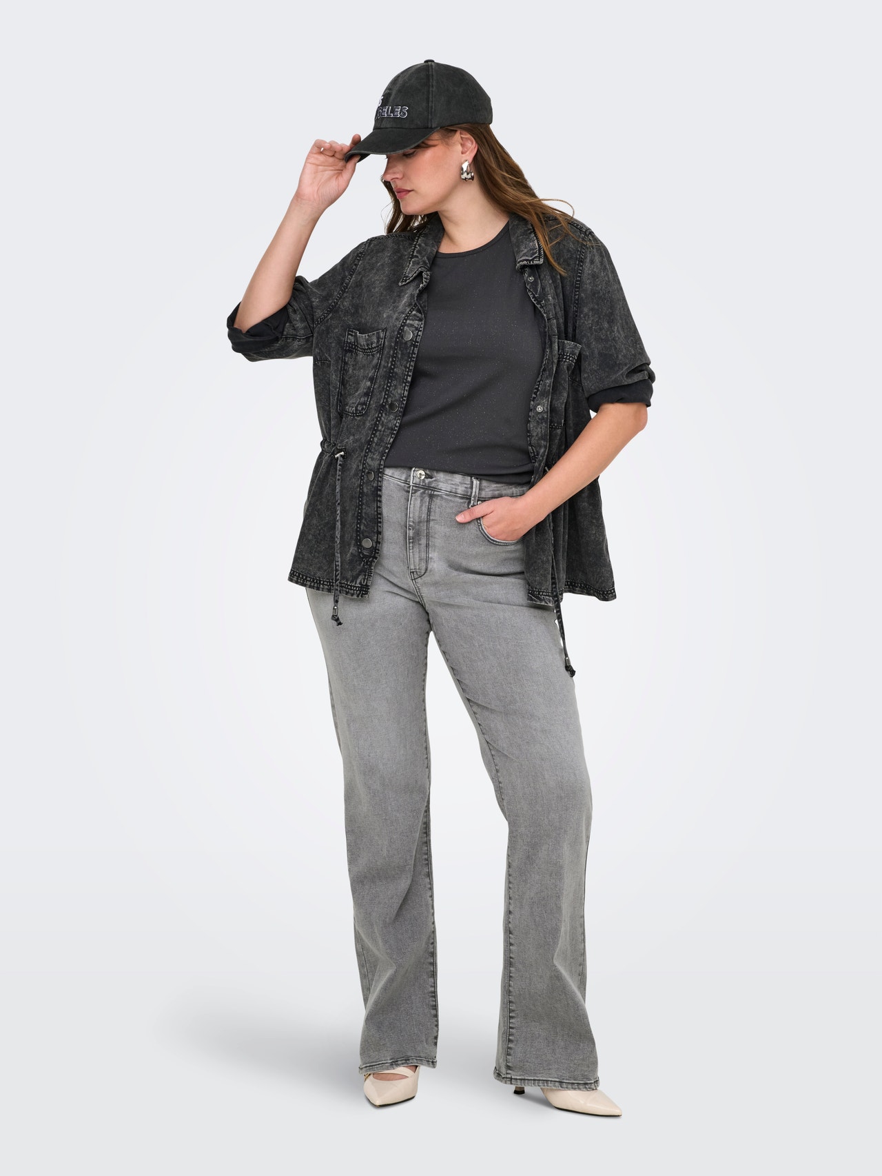 Lisage oma riietusele täiendavat särtsu meie pluss-suuruses laienevate teksadega, mis ühendavad mugavuse stiilse, jalgu pikendava lõikega. Disainil on meelitav vöökoha kõrgus ja kergelt laienev sääreava, mis loob kauni ja naiseliku silueti. Pehme veniv teksariidest pakub liikumisvabadust kogu päevaks. Ideaalne nii igapäevaseks välimuseks kui ka pidulikumateks sündmusteks. AINULT CARMAKOMA on mõeldud kumerustega naistele, kes armastavad moodi ja enesekindlalt oma isiklikku stiili väljendada. Kollektsioonides on kaasaegne teksa, meelitavad istuvused ja stiilid igaks elujuhtumiks – alates teravast ja lahedast kuni naiseliku ja klassikaliseni. Meie pluss-suuruses rõivaste valik on loodud teie kumeruste esiletõstmiseks ja mugavuse pakkumiseks, et iga pluss-suuruses naine saaks tunda end oma välimuses ilusa ja enesekindlalt. Kurvikate stiilid on loodud sobima kurvikate naiste kehadele. - Toote tüüp : Alt laieneva lõikega teksad - Taskud : Tagataskud, Münditasku, Esitaskud - Vöökoht : Keskmine vöökoht - Täiendav info : Vööaasad - Lõige : Alt laienev retro lõige