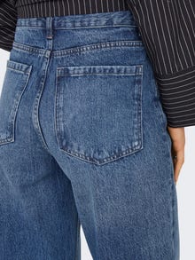 Leia endale uus pidevalt kasutuses ese nii tööks kui ka mänguks ideaalse lõike ja värviga lahedate teksade näol. - Toote tüüp : Laia lõikega teksad - Taskud : Tagataskud, Münditasku, Esitaskud - Vöökoht : Kõrge vöökoht - Jala info : Üles volditud äärised - Täiendav info : Vööaasad - Lõige : Puusast pahkluuni väga avar laia jalaosaga stiil on kujundatud mugavust silmas pidades