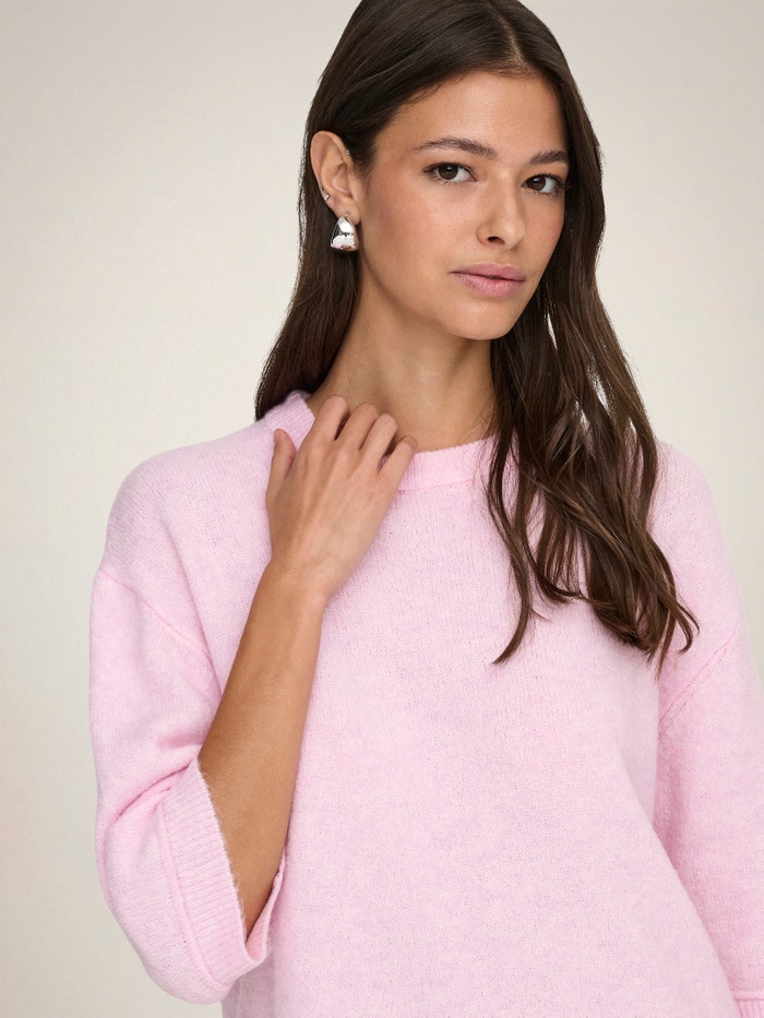 Kootud kangast lõige Ümmargune kaelus Soonikuga mansetid Langetatud õlaosa Pullover