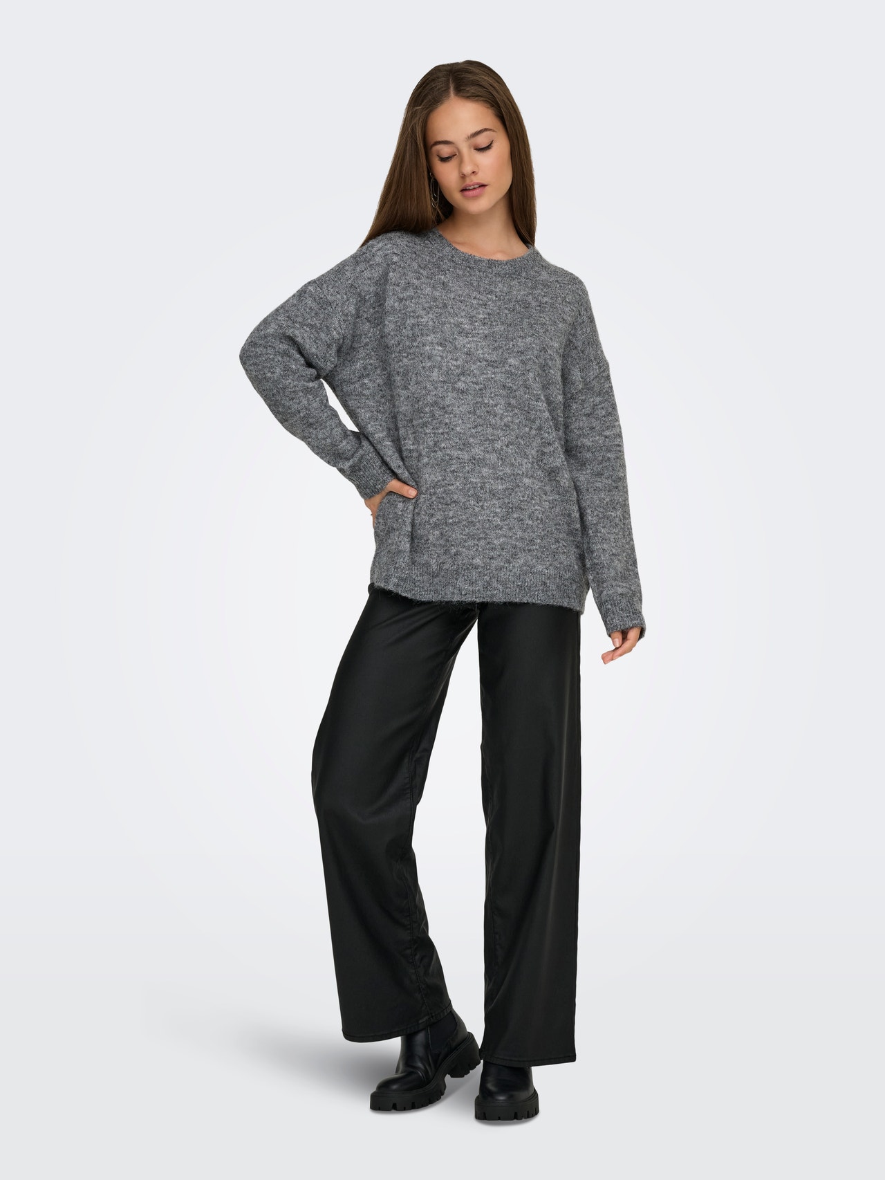 Tavapärane lõige Ümmargune kaelus Soonikuga mansetid Laiad varrukad Pullover