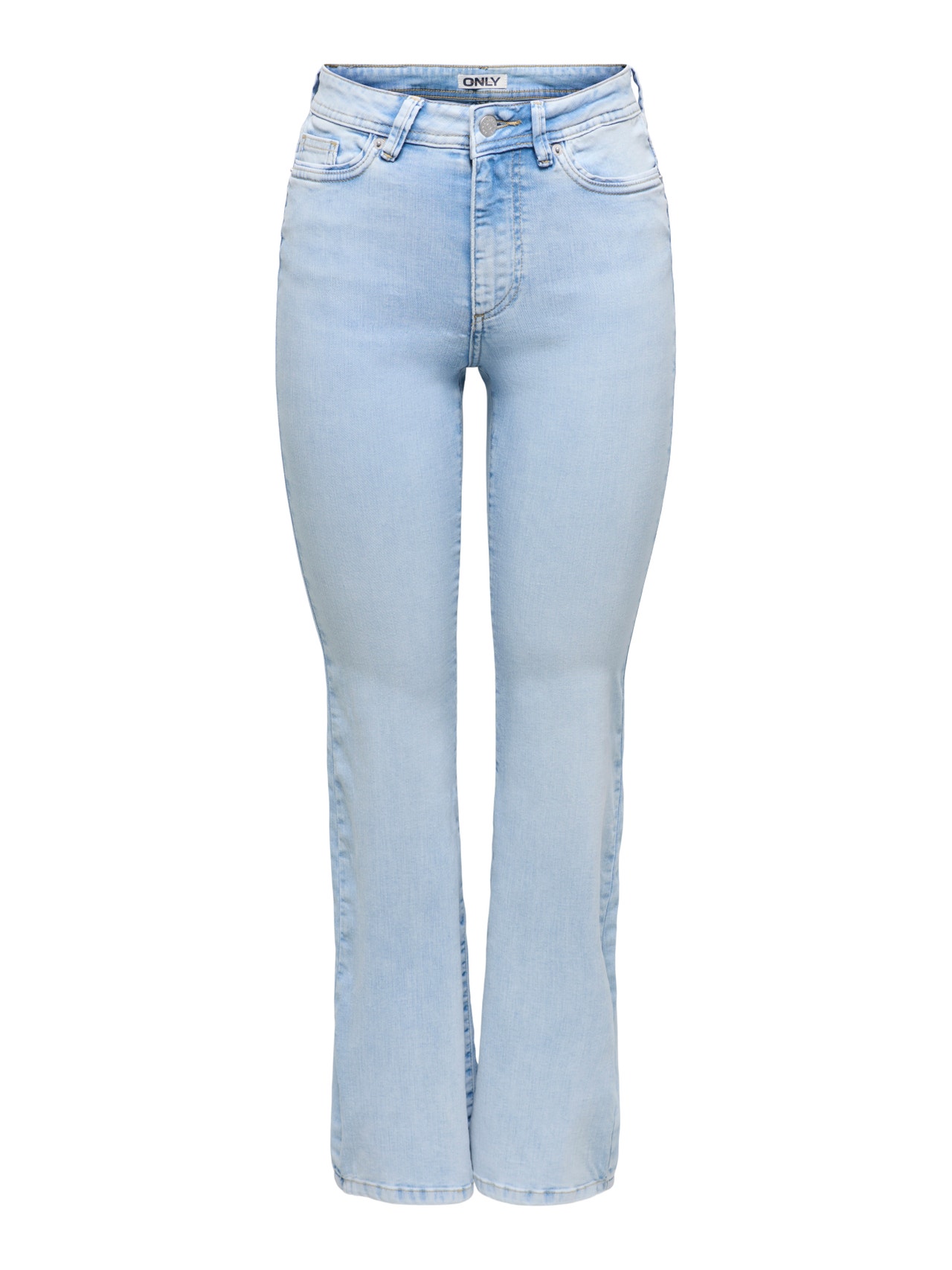 Alt laienev lõige Kõrge vöökoht Alt laienevad jalad Teksad