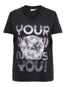 Tavapärane lõige V-kaelus Eraldi lisatud varrukad T-särk