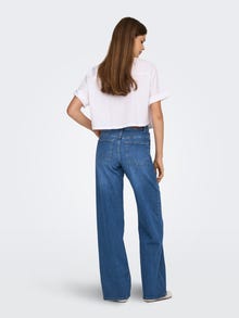Leia endale uus pidevalt kasutuses ese nii tööks kui ka mänguks ideaalse lõike ja värviga lahedate teksade näol. - Toote tüüp : Laia lõikega teksad - Lõppsõna : Nööpidega kinnitus - Taskud : Tagataskud, Münditasku, Esitaskud - Vöökoht : Kõrge vöökoht - Täiendav info : Vööaasad - Lõige : Puusast pahkluuni väga avar laia jalaosaga stiil on kujundatud mugavust silmas pidades