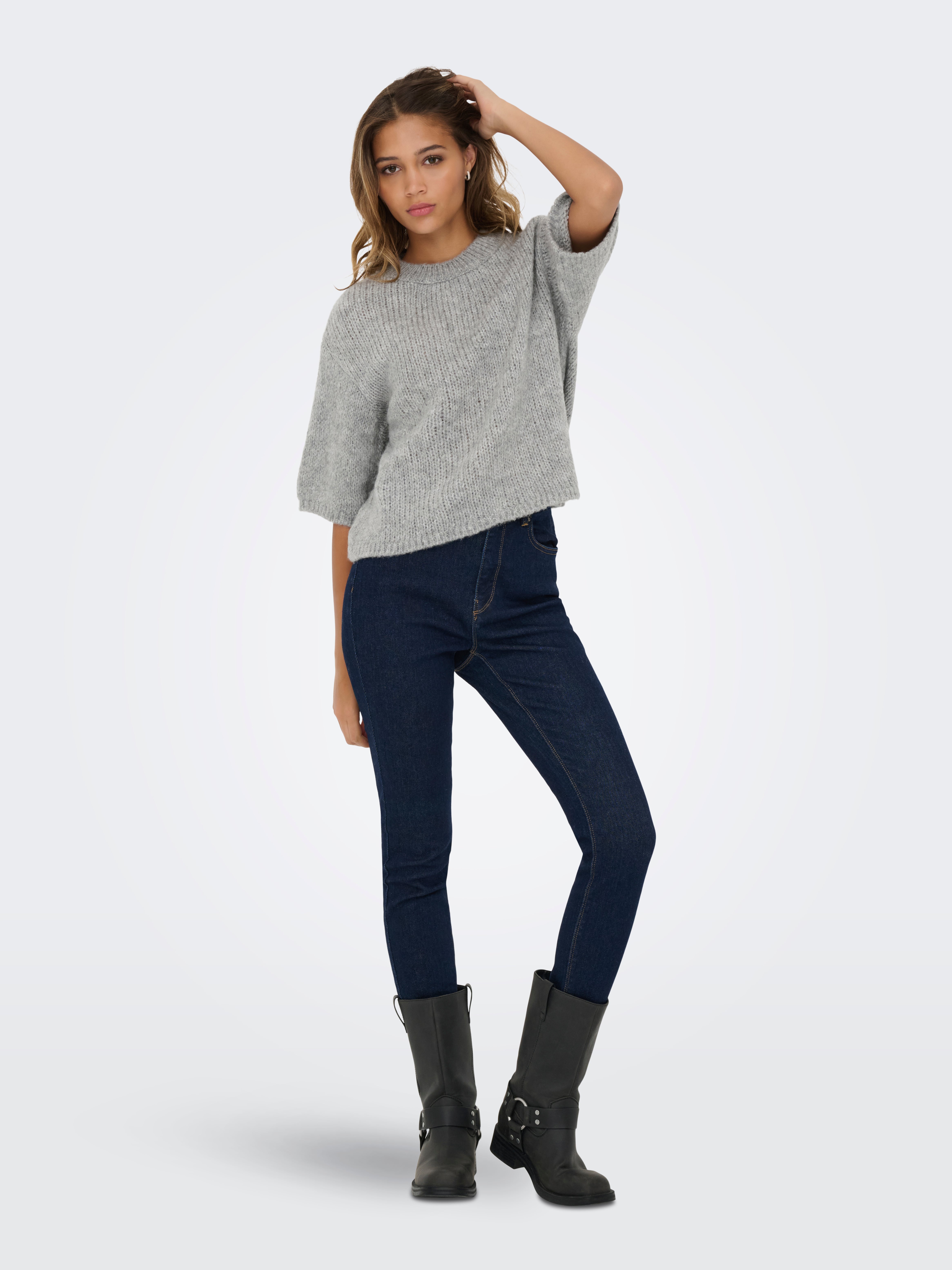 Kootud kangast lõige Ümmargune kaelus Soonikuga mansetid Langetatud õlaosa Pullover