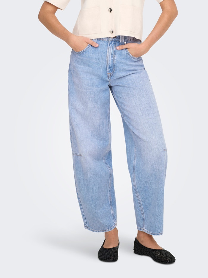 Kõrge vöökoha ja avara lõikega Kõrge vöökoht Teksad
