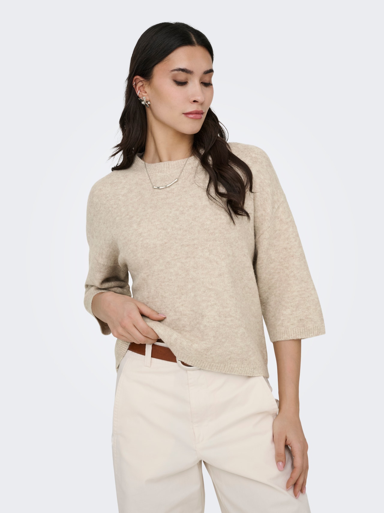 Kootud kangast lõige Ümmargune kaelus Pullover
