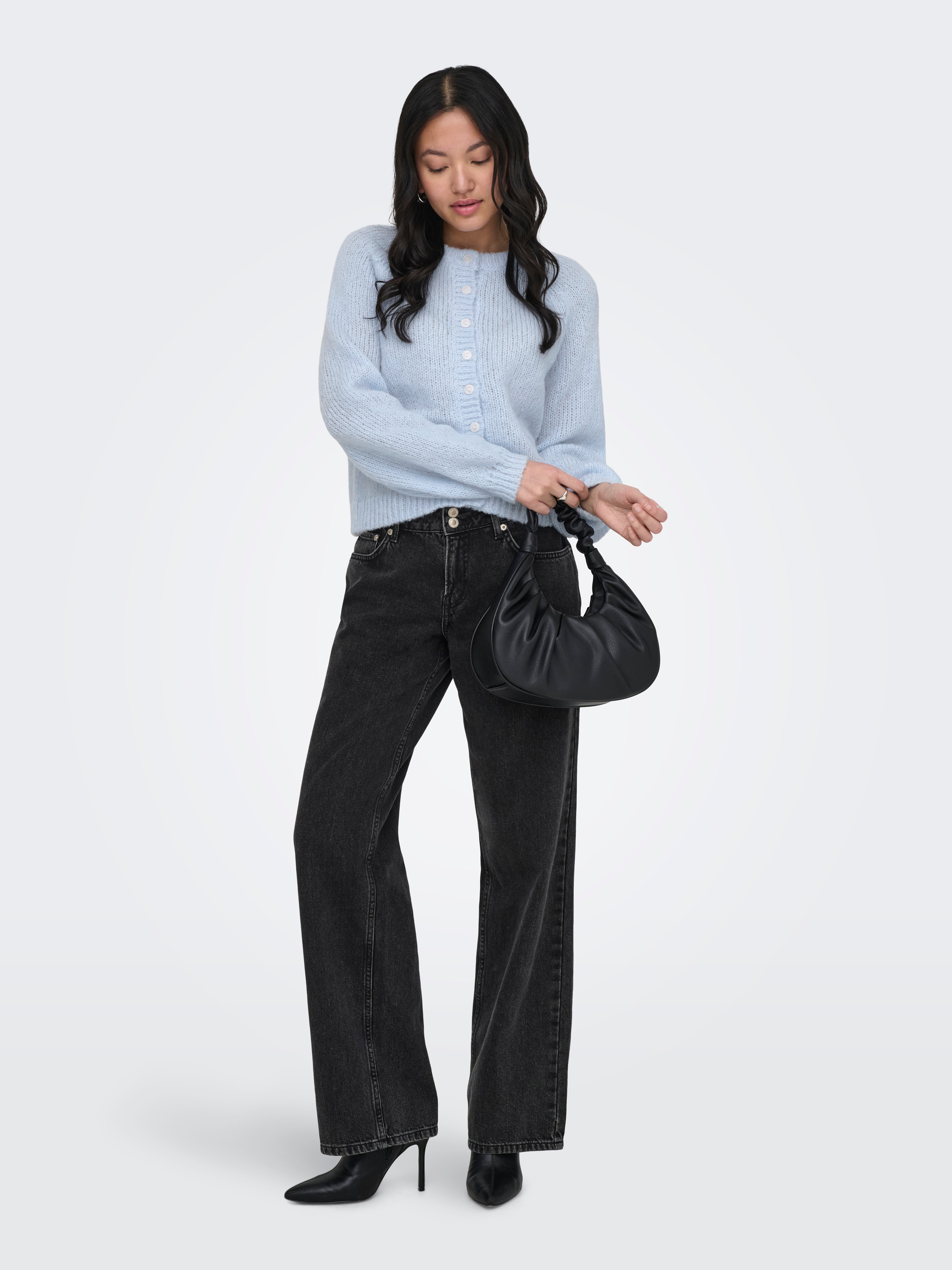 Tavapärane lõige Ümmargune kaelus Soonikuga mansetid Raglaanvarrukad Kootud kardigan