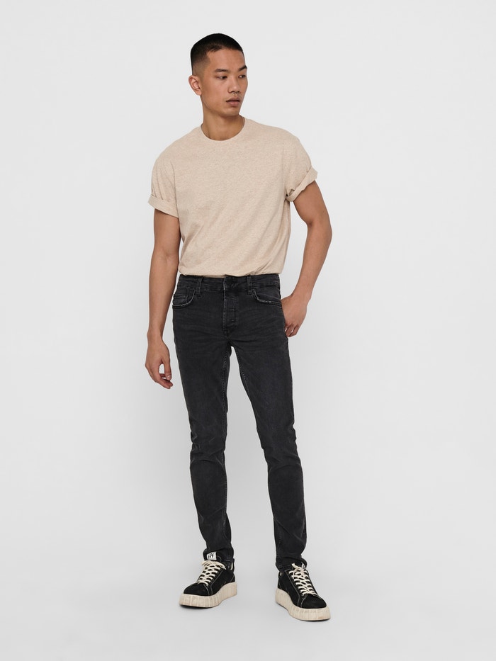 - Lõige : LOOMil on kitsas ja sirge jalaosa ning ahas sääreava. Neil teksadel on madal värvel ja need on elastsest venivast teksariidest, mis lihtsustab nende kandmist
