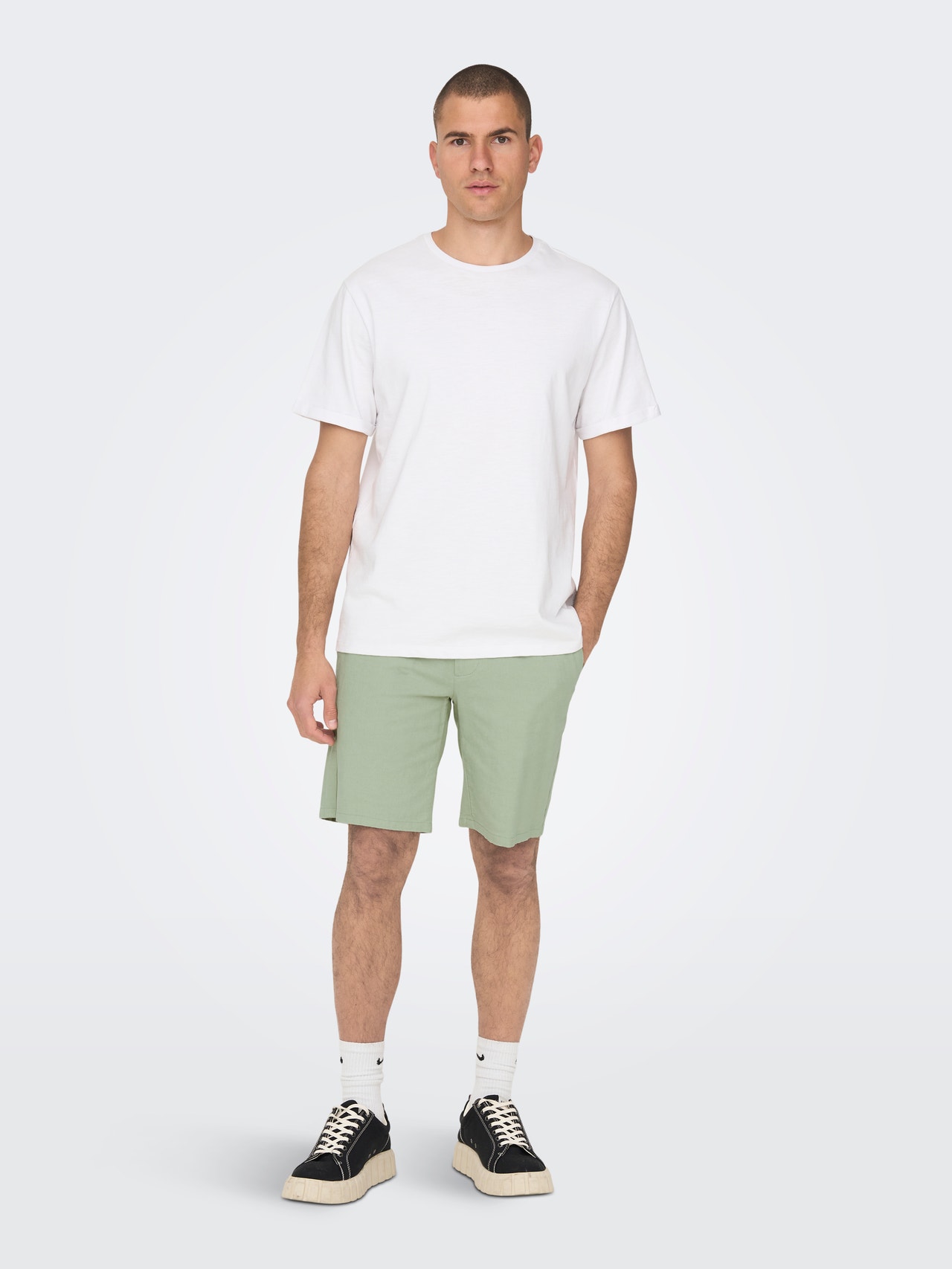 Näita oma isiklikku stiili lahedate ja ajatute elementidega, mis sobivad ideaalselt igapäevaseks kandmiseks nii koolis kui ka tööl. - Toote tüüp : Chino-šortsid - Lõppsõna : Tõmblukuga kinnitus - Taskud : Tagataskud, Küljetaskud - Pikkus/suurus : Lühike - Täiendav info : Vööaasad - Lõige : Tavapärane lõige