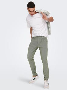 - Toote tüüp : Chino-püksid - Taskud : Küljetaskud - Vöökoht : Keskmine vöökoht - Täiendav info : Vööaasad - Lõige : Kitsas ja alt kitsenev lõige
