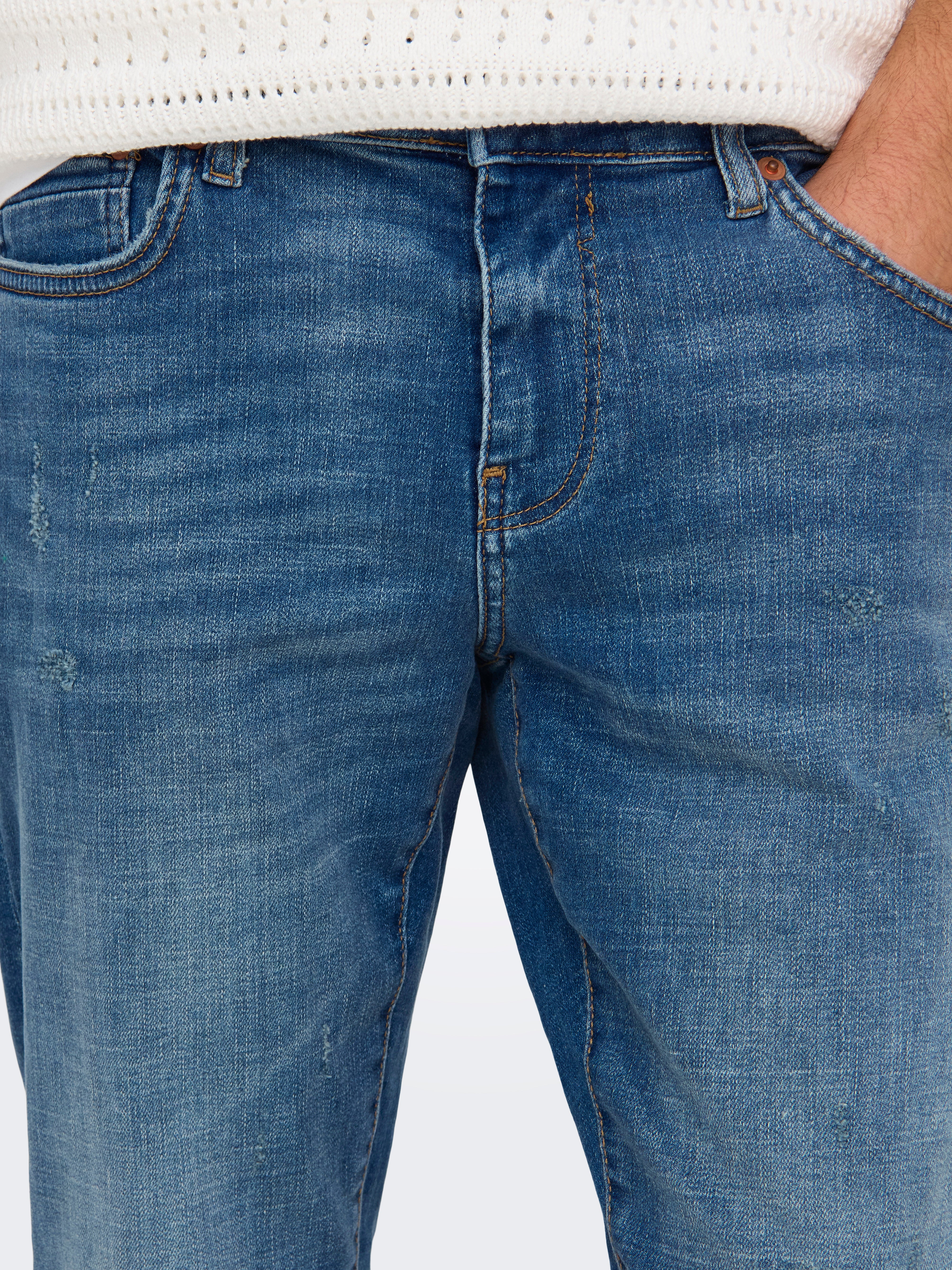 - Pesu/viimistlus : Keskpesu pakub pestud ning sissekantud teksailmet, Kerge rebenemine parandustega