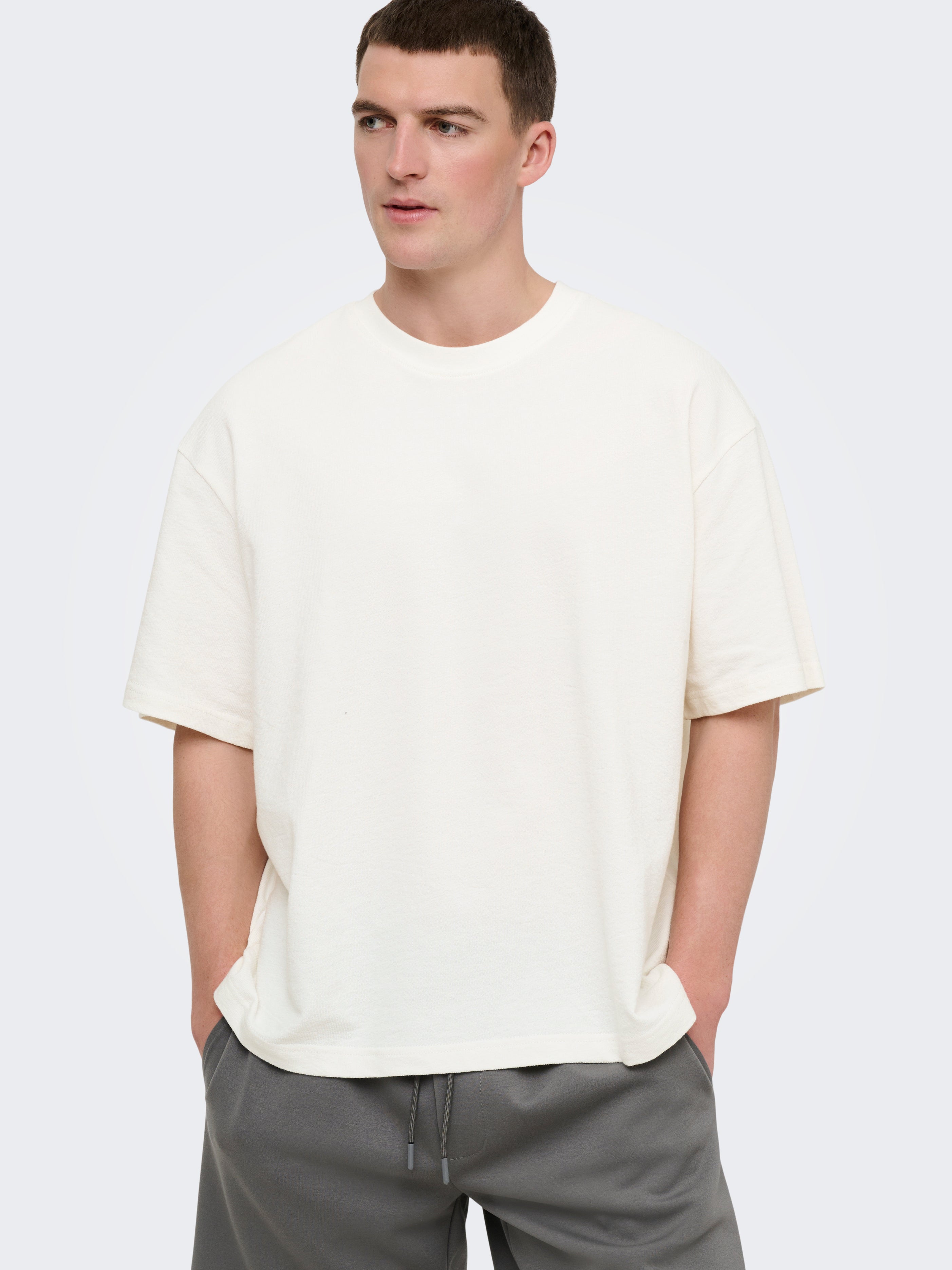 Väga suur lõige Ümmargune kaelus T-särk