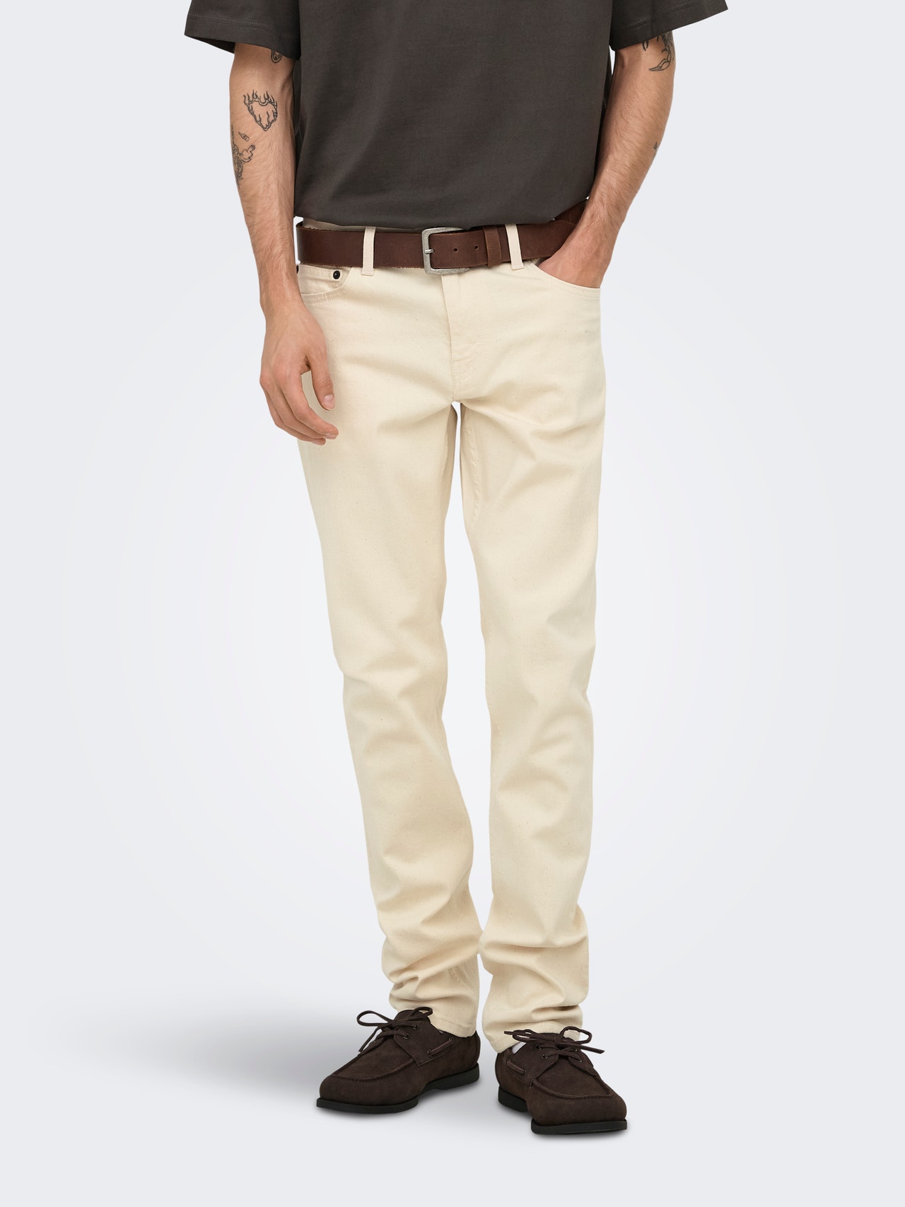 - Lõige : LOOMil on kitsas ja sirge jalaosa ning ahas sääreava. Neil teksadel on madal värvel ja need on elastsest venivast teksariidest, mis lihtsustab nende kandmist