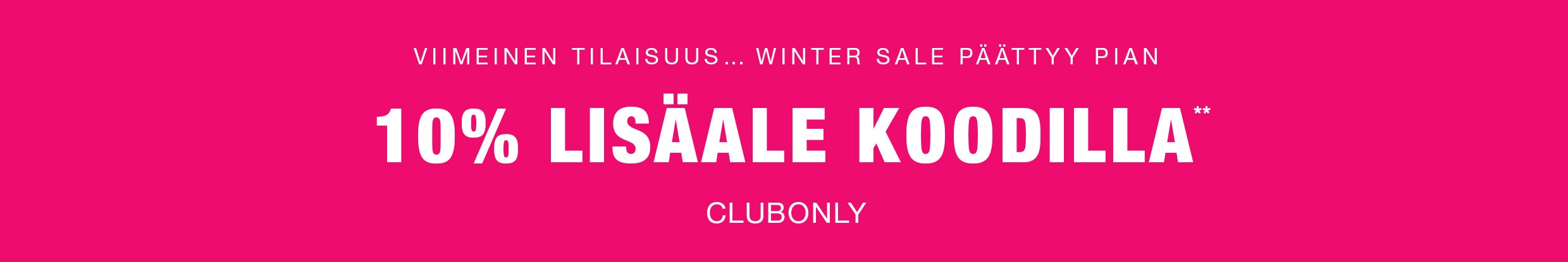 **Koskee valikoituja malleja. Ei koske lahjakorttien ostoa eikä voi yhdistää muihin alennuksiin. 10 %:n lisäale vain jäsenille. Voimassa 4. tammikuuta - 9. tammikuuta