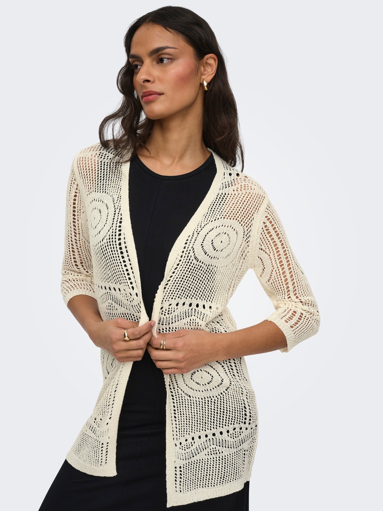 Rakenneneuleessa on runsaasti eri kuvioita ja struktuureja, se luo tyylikkään ja selkeälinjaisen ilmeen.
