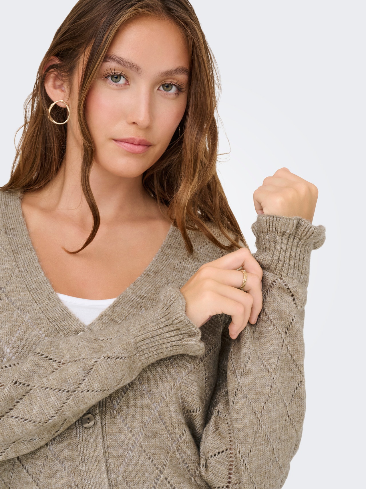 Viimeistele asusi ajattomalla, naisellisella neuleella, joka tuo ilmeeseen pehmeyttä ja lämpöä.