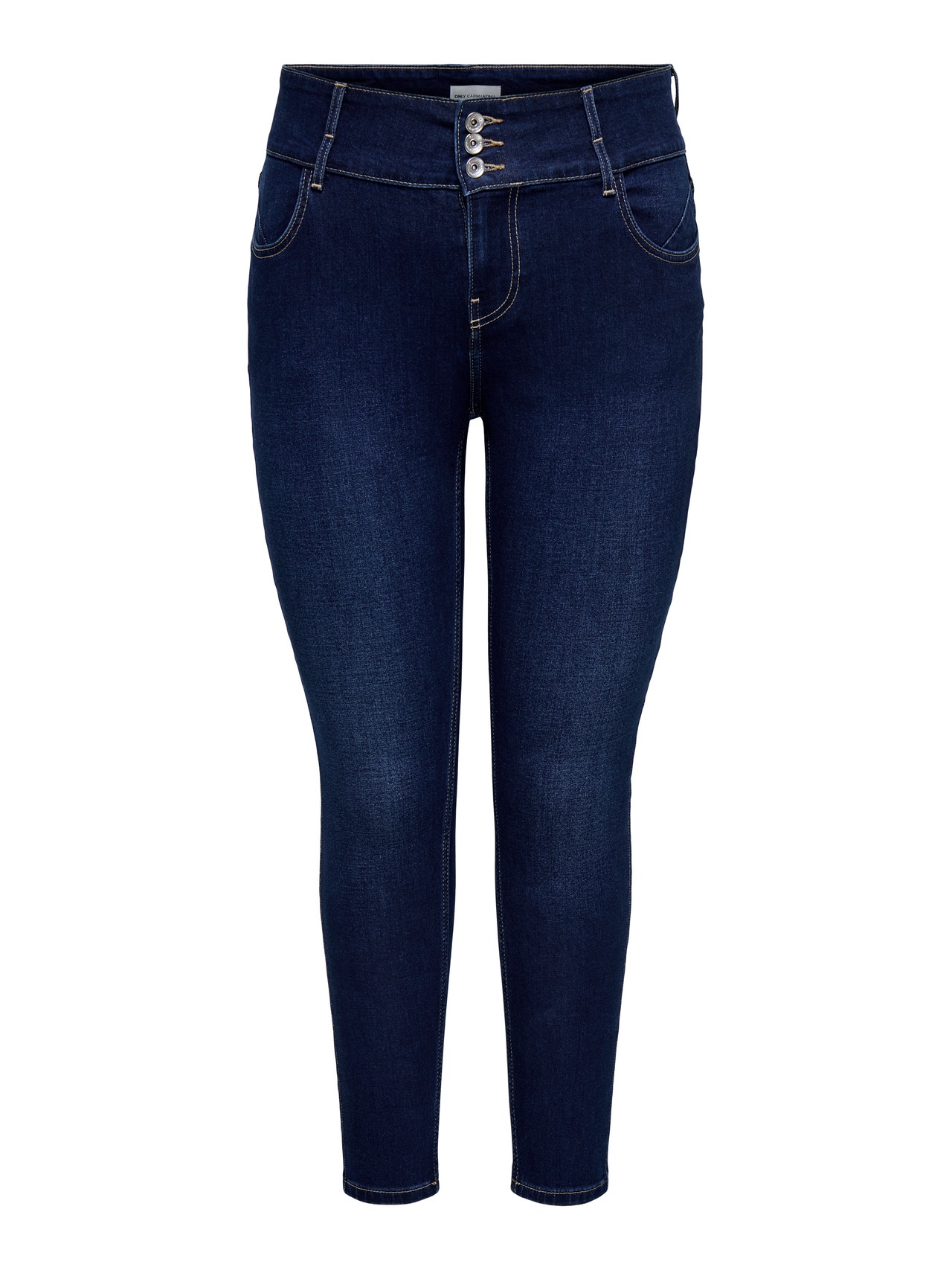 ONLY CARMAKOMin plus size skinny fit -farkkumme on suunniteltu korostamaan kurvejasi tiukasti istuvalla muodolla, joka tarjoaa itsevarman ja imartelevan ilmeen. Tyylissä on mukava vyötärön korkeus ja runsaasti joustavuutta, joten ne sopivat täydellisesti jokapäiväiseen käyttöön. Ohut jalka luo tyylikkään siluetin, joka sopii sekä rentoon että hienostuneempaan asuun. Luotettava valinta mihin tahansa olennaiseen vaatekaappiin. Denim on ikoninen materiaali, joka on saatavilla useissa eri tyyleissä, useimmiten se tunnetaan kestävyydestään ja viistosti uurteisesta pintakuviostaan. VAIN CARMAKOMA on tarkoitettu naisille, joilla on kurveja ja jotka rakastavat muotia ja ilmaisevat persoonallista tyyliään luottavaisin mielin. Mallistoissa on modernia farkkua, imartelevia istuvuuksia ja tyylejä jokaiseen tilanteeseen – särmikästä ja siististä naiselliseen ja klassiseen. Plus-kokoisten vaatteiden valikoimamme on suunniteltu korostamaan kurvejasi ja tarjoamaan mukavuutta, jotta jokainen plus-koon nainen voi tuntea olonsa kauniiksi ja itsevarmaksi ulkonäössään. - Tuotetyyppi : Skinny fit -farkut - Sulkeminen : Nappisepalus - Taskut : Takataskut, Etutaskut - Vyötärö : Korkea vyötärö - Pituus/koko : Nilkkapituus - Lisä yksityiskohdat : Vyölenkkiä - Malli : Nämä skinny fit -farkut istuvat mukavasti päällesi lantiolta nilkkoihin - Kiinnitystapa : Puuvilla