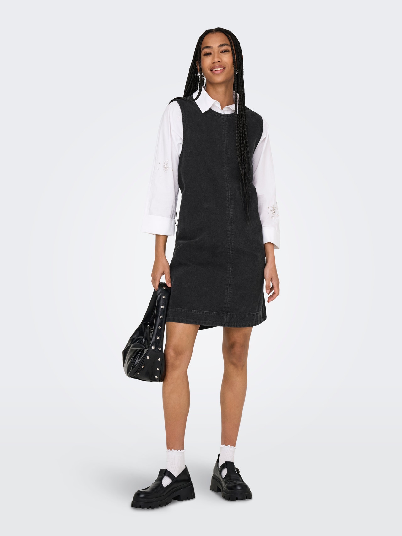 Pukeudu cooliin farkkumekkoon, jonka voi kesällä yhdistää tennareiden ja kevyen takin kanssa tai talvella sukkahousujen, saappaiden ja neuleen kanssa.