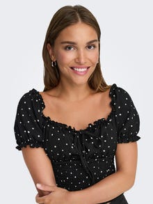 Tee arkiasustasi hetkessä kuin uusi lisäämällä siihen naisellinen paita, joka luo pehmeän ja siistin ilmeen. - Tuotetyyppi : Toppi - Kaula : Neliönmuotoinen pääntie - Hiha : Lyhyet hihat - Hihat : Puhvihihat - Lisä yksityiskohdat : Poimutus - Malli : Tight fit