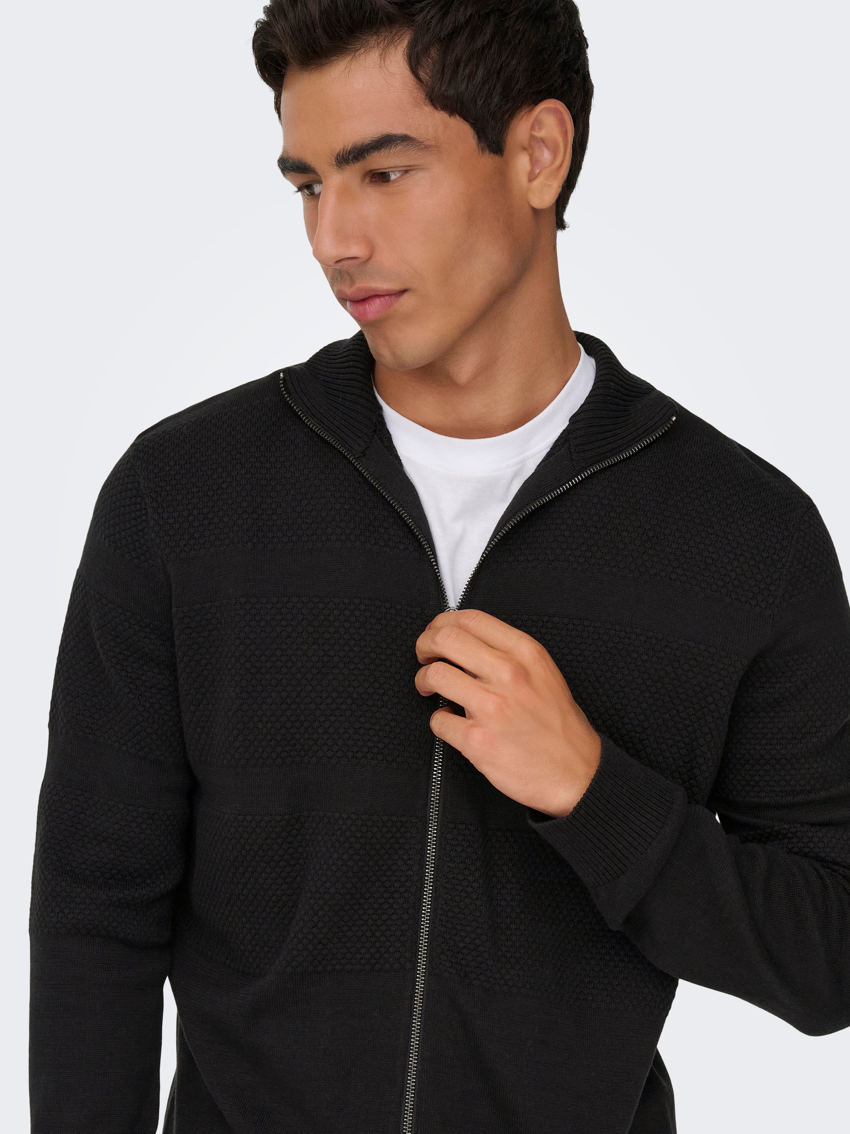 Rakenneneuleessa on runsaasti eri kuvioita ja struktuureja, se luo tyylikkään ja selkeälinjaisen ilmeen.