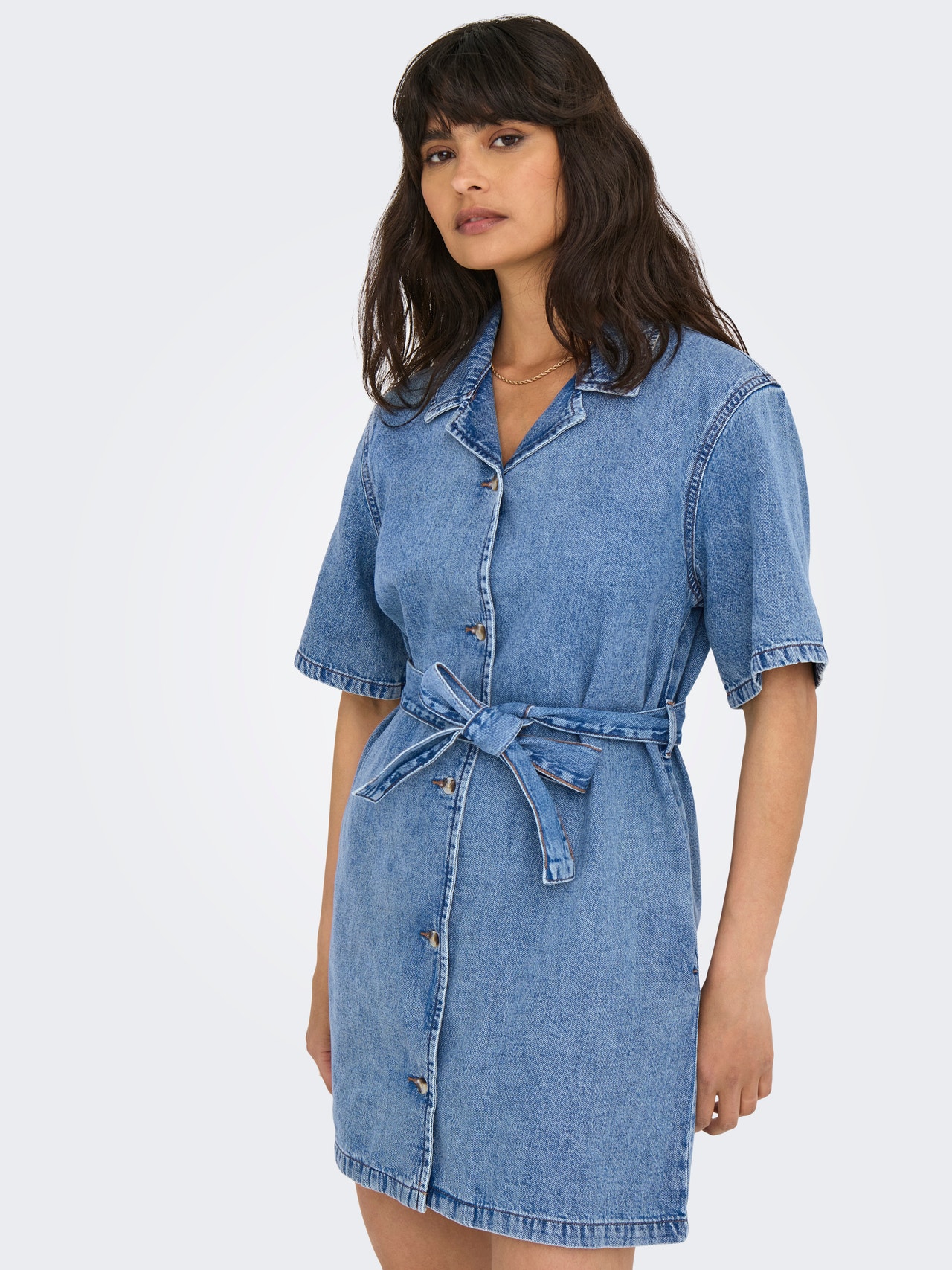 Restez décontractée avec une robe en denim parfaitement assortie à une paire de baskets et une veste légère en été, ou à un collant, des bottes et un pull pour un look hivernal épuré.