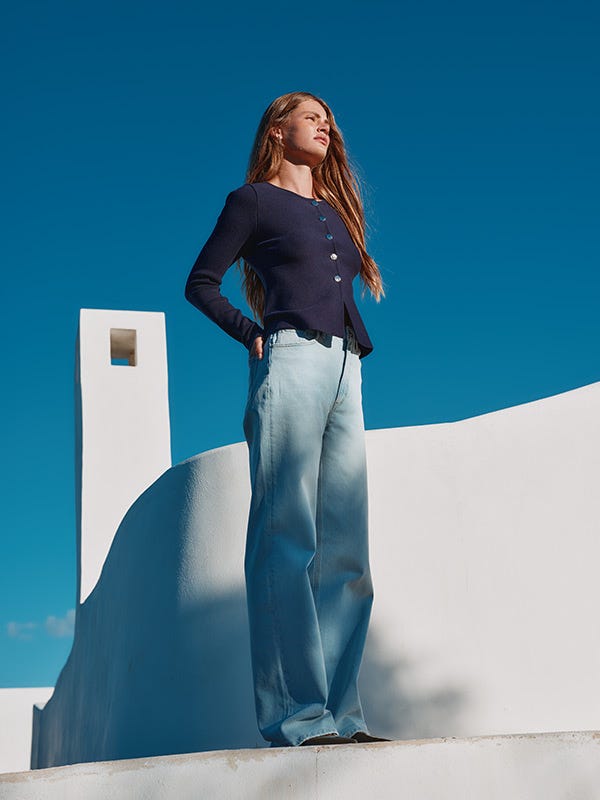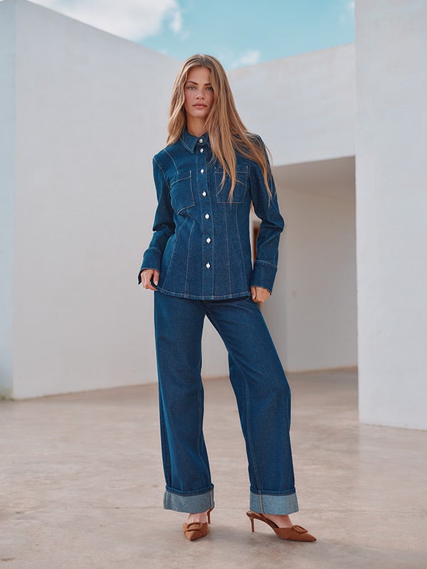- Layering : le denim est idéal pour créer des looks superposés. Jouez la carte de la superposition avec un cardigan, une veste, un trench ou un blazer pour donner du relief et varier votre look. Un haut oversize se porte avec un jean plus ajusté, tandis qu'un jean large ou barrel se marie mieux avec un crop top ou un top près du corps pour équilibrer la silhouette.