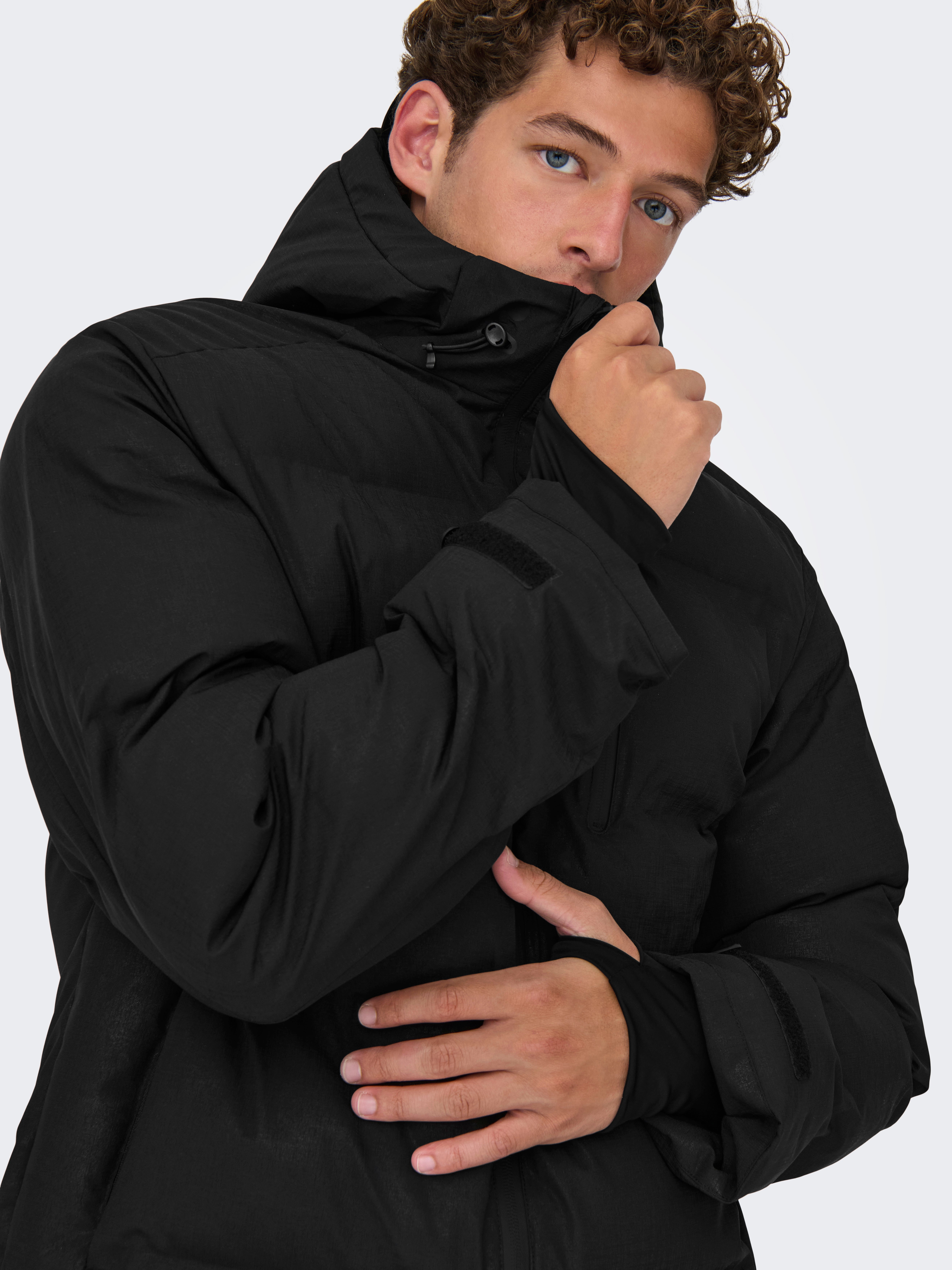 - Col : Capuche avec cordon de serrage