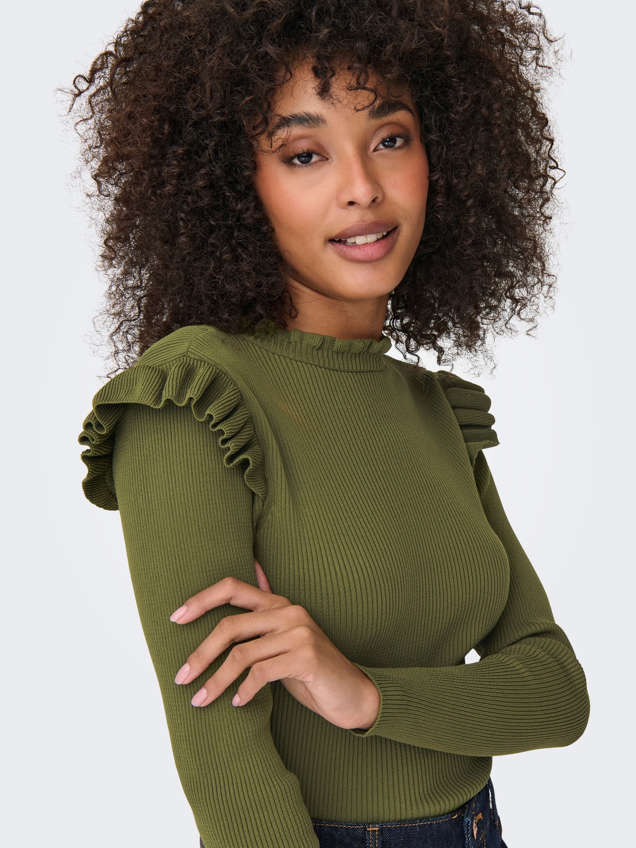Nadopunite svoj izgled bezvremenskim, ženstvenim pletivom i dodajte mekoću i toplinu. - Vrsta proizvoda : Pleteni pulover - Vrat : O-vrat - Rukav : Dugi rukavi (L/S) - Dodatni detalji : Ruffles - Pristajati : Redovno prianjanje