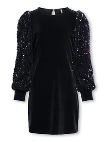 Slatka i elegantna nadogradnja s haljinama ONLY GIRLS! Savršena za svakodnevno nošenje i posebne prilike, od šarenih ležernih haljina do lijepih haljina za zabavu. Uparite ih s tajicama i tenisicama za izgled koji kombinira udobnost i osobni stil. ONLY GIRLS je za djevojke koje vole izraziti svoj stil s povjerenjem. Kolekcije nude savršen spoj trendi trapera, ženstvenih detalja i stilova inspiriranih rock 'n' rollom. Naša odjeća osmišljena je kako bi mladim ljubiteljima mode pružila priliku da se istaknu i svakodnevnim izgledom i svečanim odjevnim kombinacijama. - Vrsta proizvoda : Haljina - Vrat : O-vrat - Rukav : Dugi rukavi (L/S) - Duljina/veličina : Mini duljina - Dodatni detalji : Svjetlucavi detalj, Šljokice - Pristajati : Čvrsto prianjanje - Pažnja : Perle/šljokice/kamenčići na ovom predmetu mogu otpasti tijekom upotrebe. Pažljivo pročitajte upute za pranje i njegu, UPOZORENJE! Držite se podalje od vatre